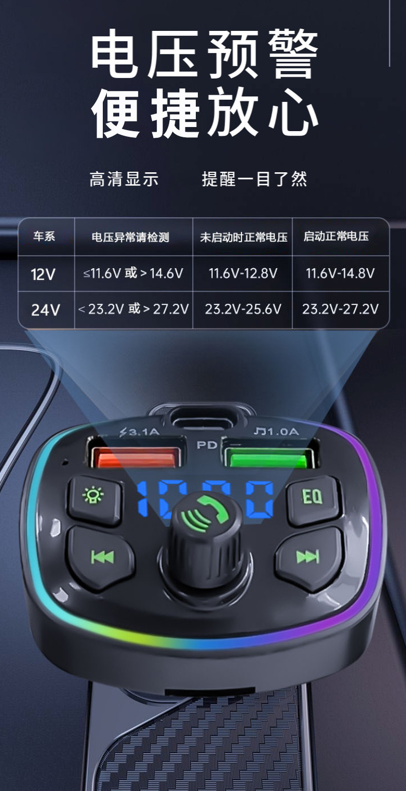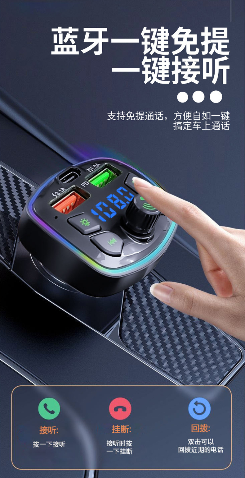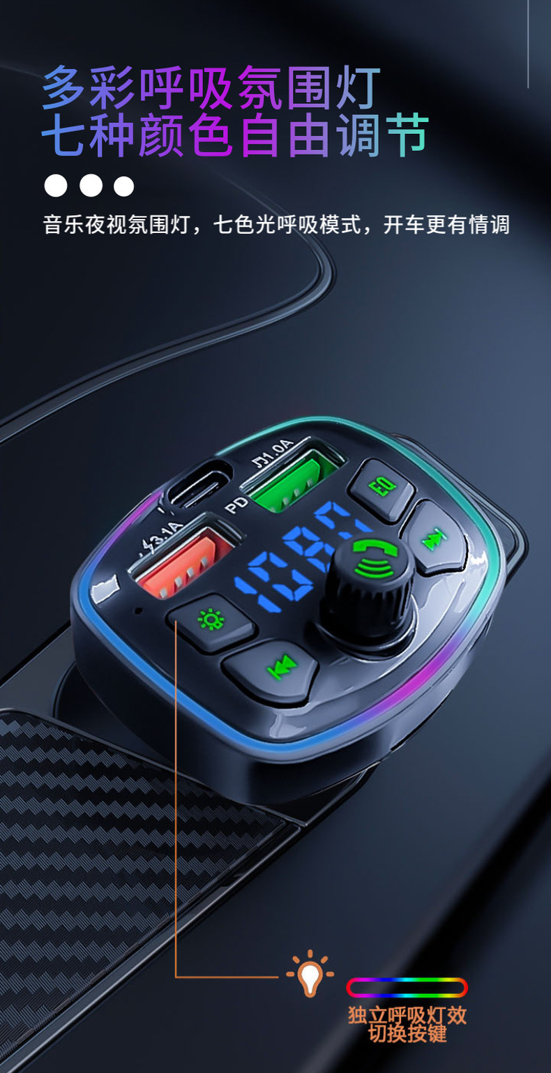 Автомобильный usb зарядное устройство FM-передатчик автомобиля Bluetooth mp3 тип прикуривателя pd зарядное устройство атмосферный свет q7