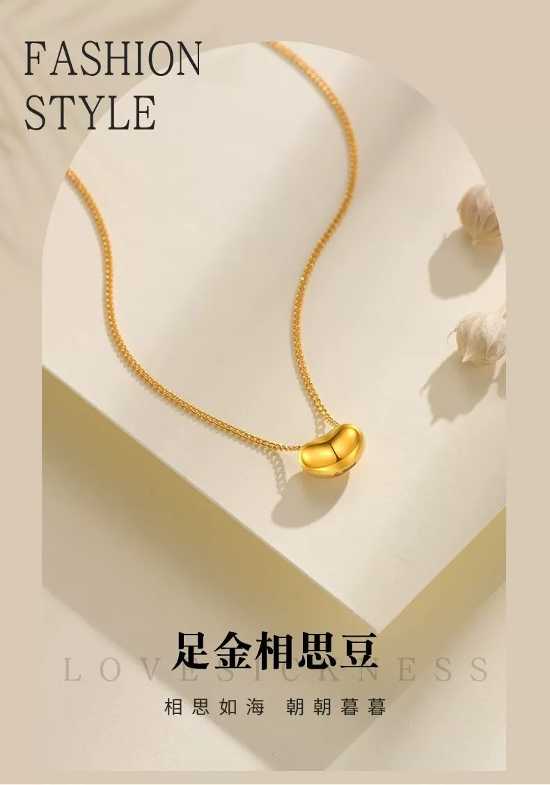 Подвеска из золота 24 карата с бобом акации, чистое золото 999 пробы, аксессуары для ключицы «сделай сам», 5 г золота, изысканное маленькое золотое бобовое доступное роскошное женское ожерелье