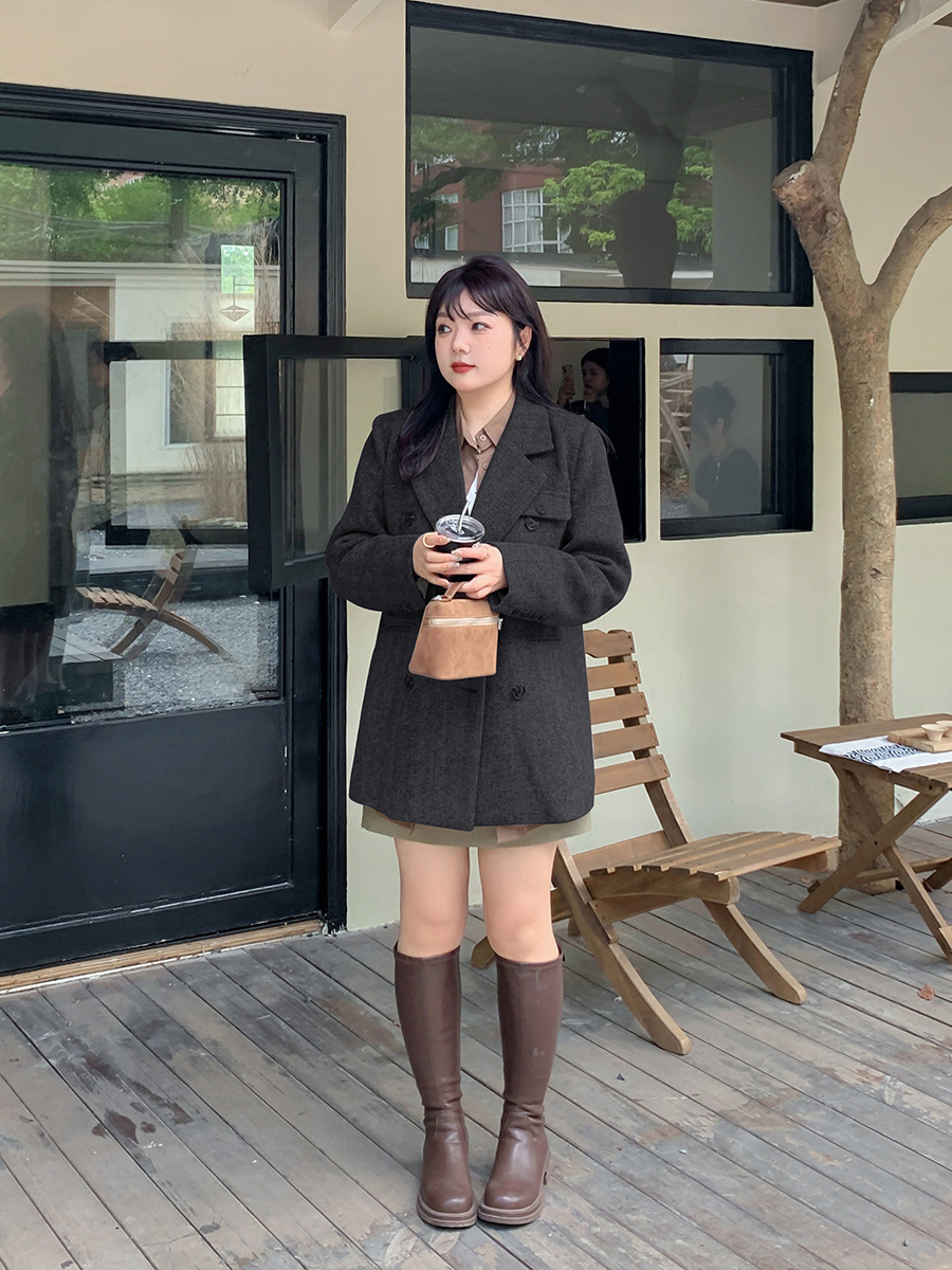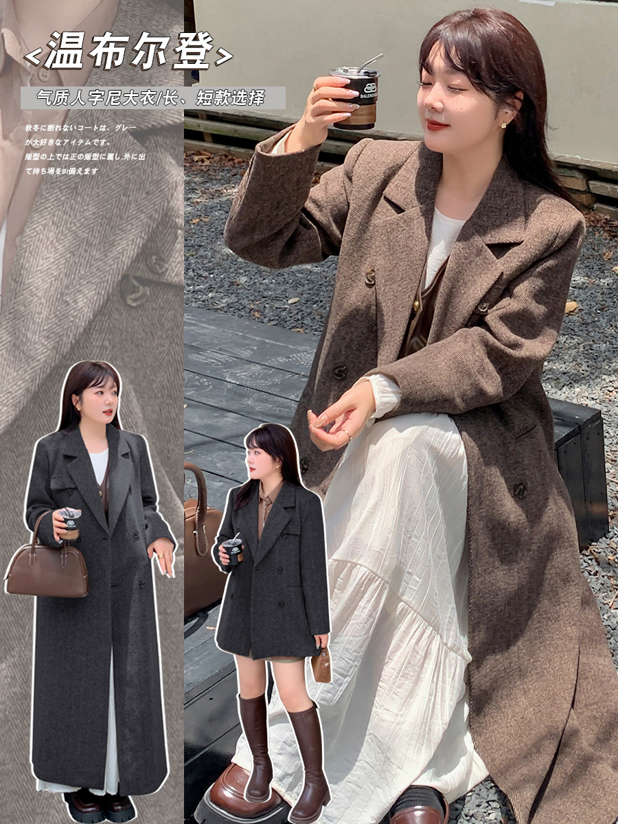 A517 Xuanchen слегка толстый большой размер корейский стиль ретро длинный и короткий темный узор толстый костюм осень и зима широкая версия модная куртка с длинными рукавами
