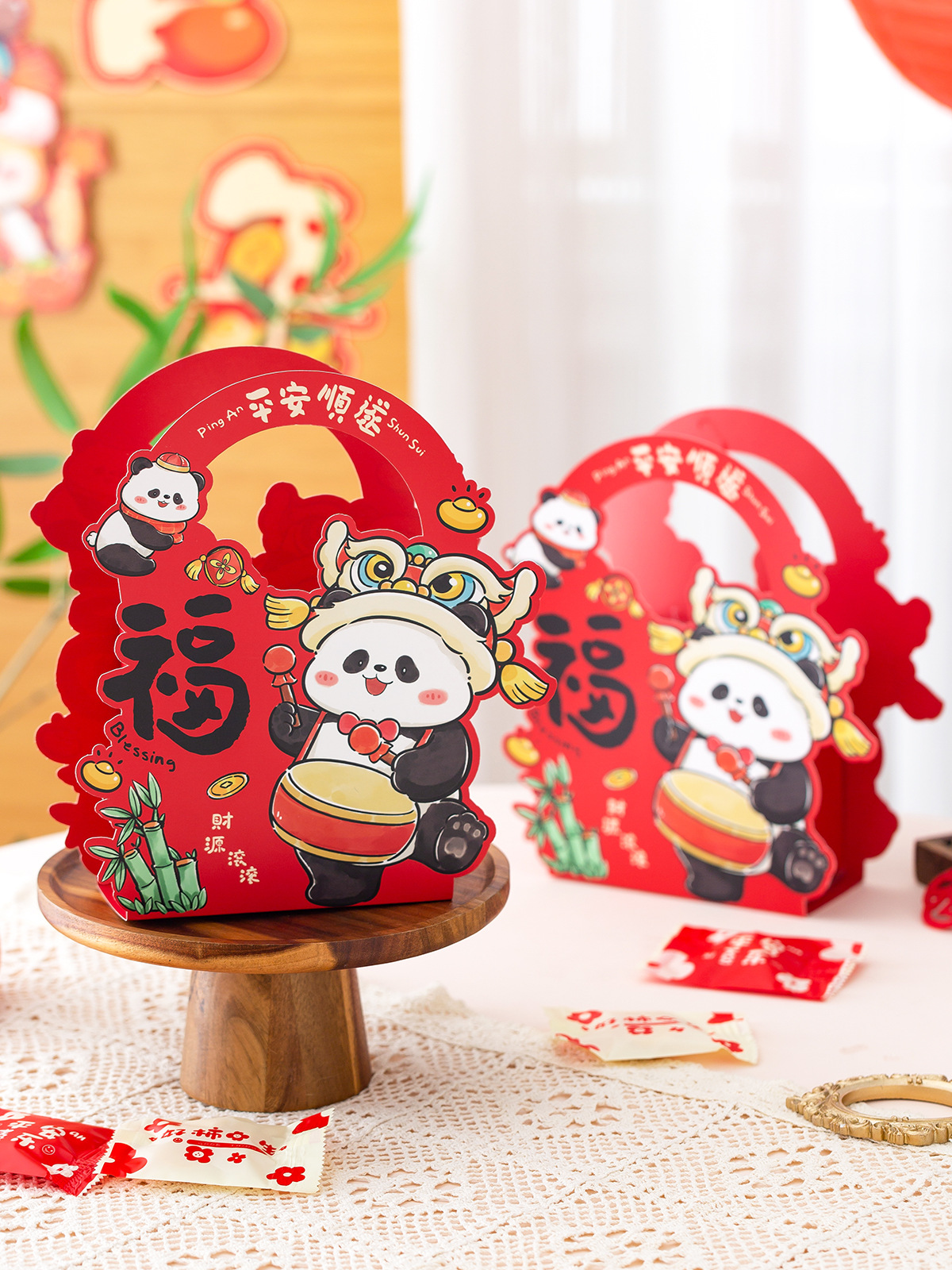 удача; Прочное богатство; Лев приходит и поворачивается; Мир и радость; благословение золотой змеи; Благословения панды; Портативное пробуждение льва