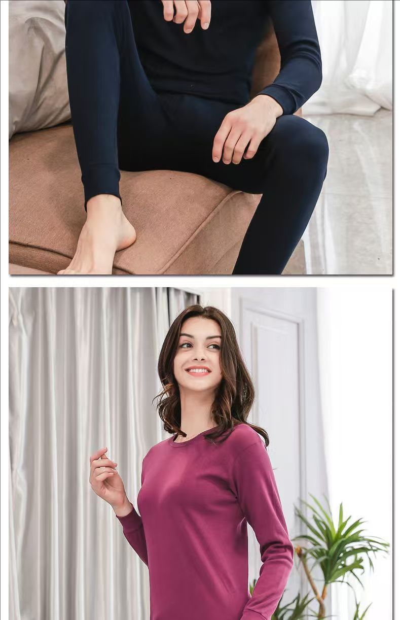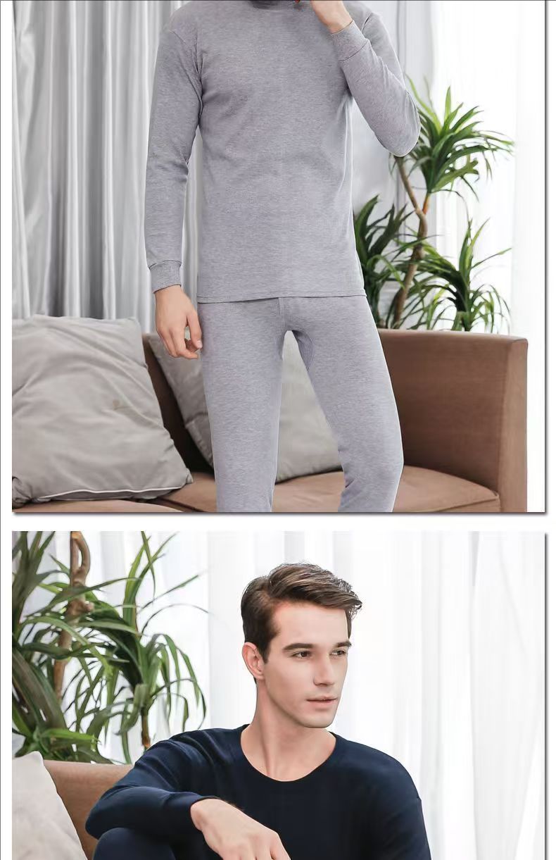 Хлопок мужская осенняя одежда осенние брюки женские хлопковые термобелье тонкий костюм с круглым вырезом