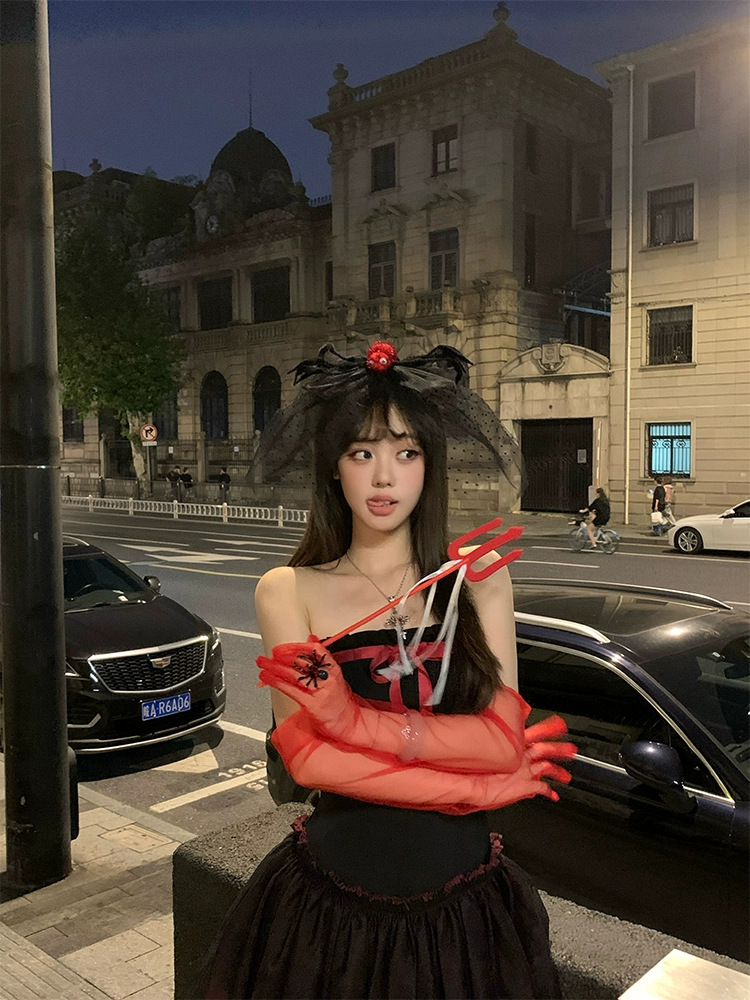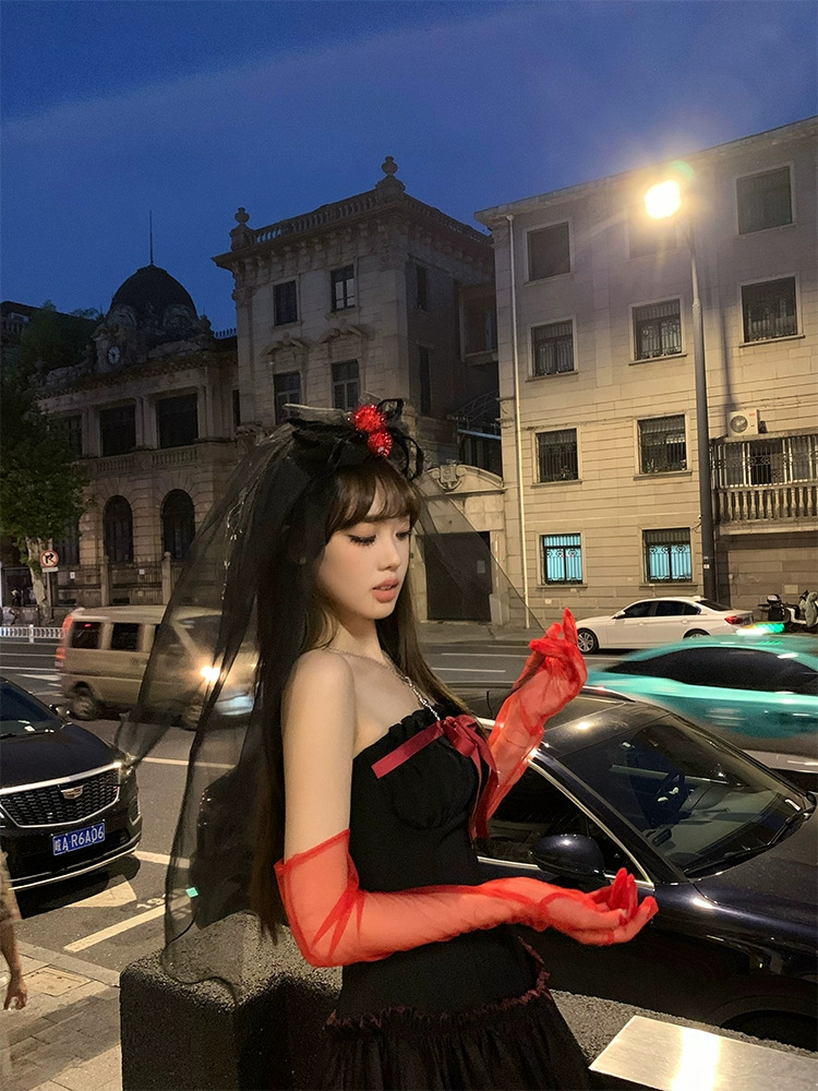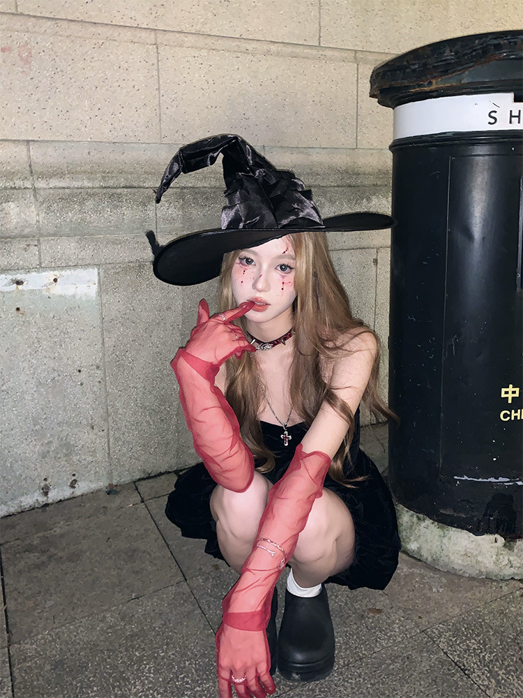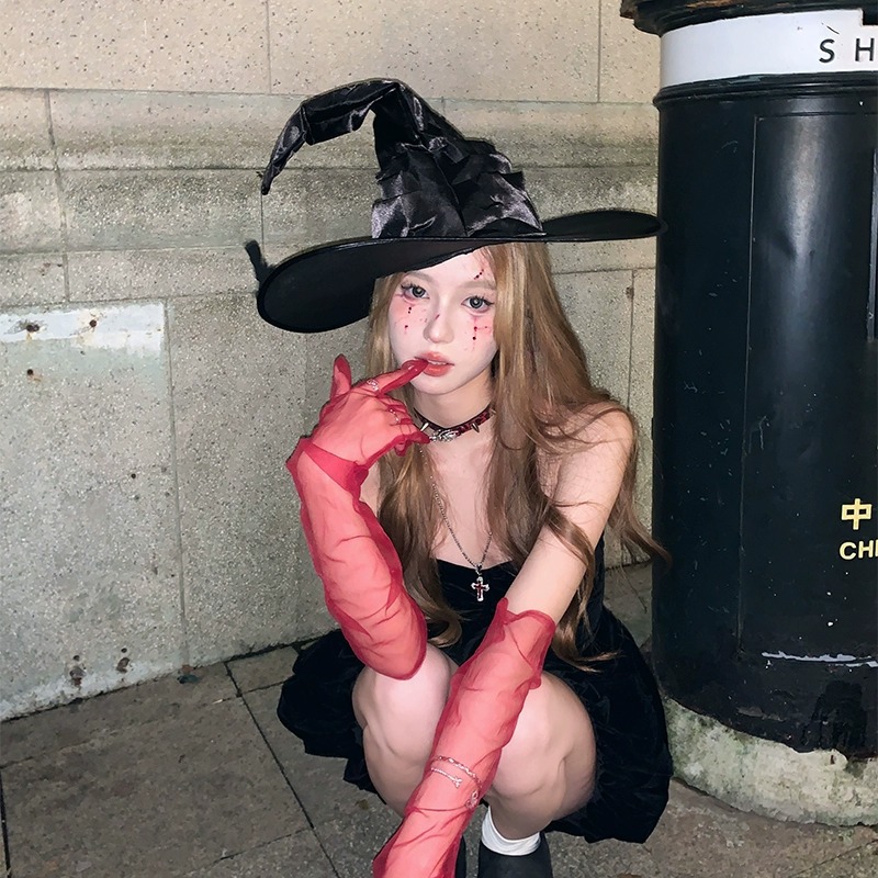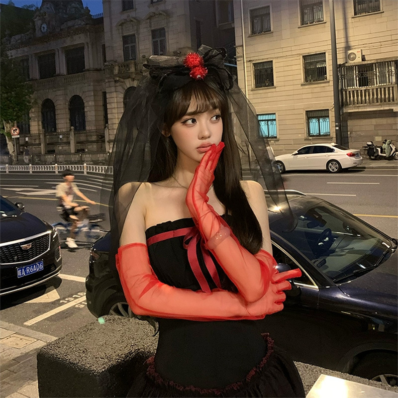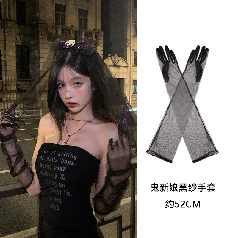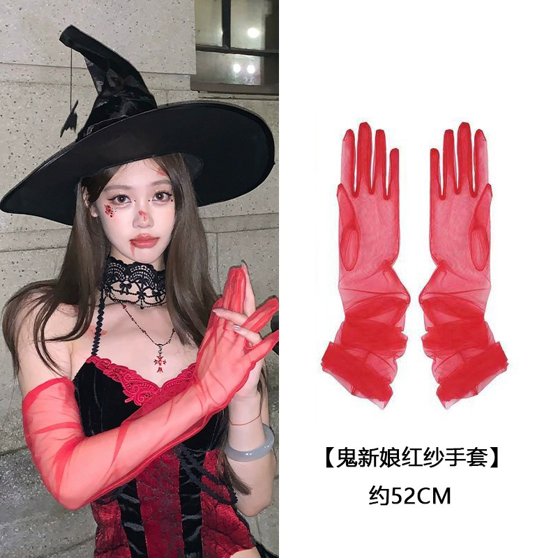 Оптовая продажа Хэллоуин cos сетка пряжа красные перчатки женские руки рукава ретро готика длинные фото одеваются аксессуары женщины
