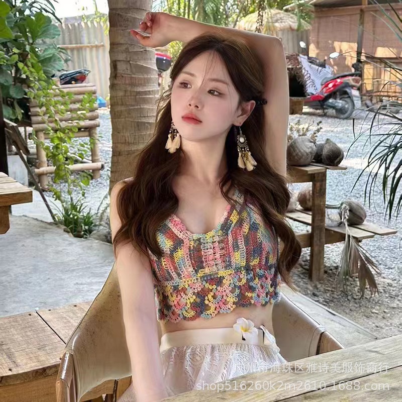 Морская мода сексуальный камзоловый жилет с вязаной пляжной спиной для отдыха