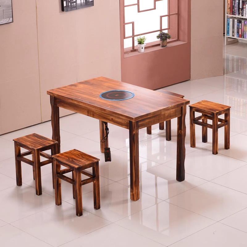 Деревянные столы с горячим горшком Индукционная плита отеля Закуски Восемь Бессмертных Стол Фермерские столы и стулья Коммерческий квадратный стол Стол с горячим горшком