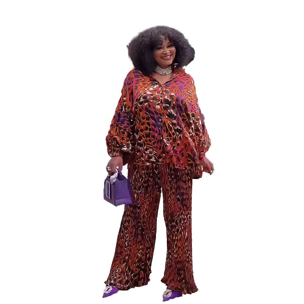 Внешняя торговля Европа, Америка и Африка моды больших размеров женский костюм свободный блузка с принтом топ плиссированные широкие брюки