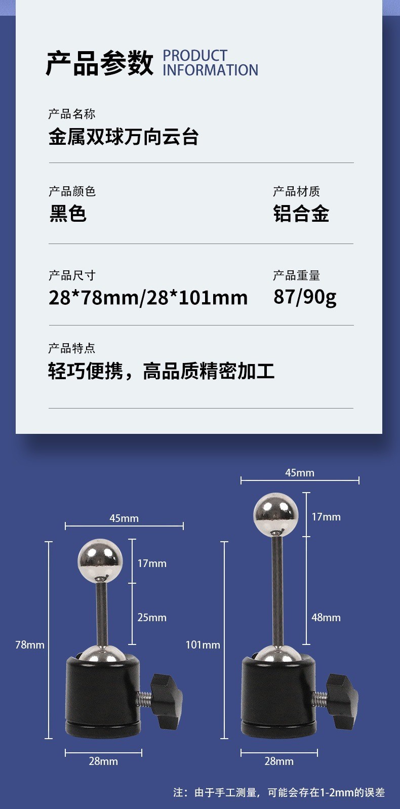 Двойной шар, вращающаяся на 360 градусов металлическая камера с панорамированием/наклоном, мобильный телефон, кронштейн для прямой трансляции, аксессуары, накладной снимок, горизонтальный и вертикальный зажим с шаровым отверстием