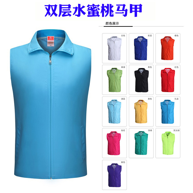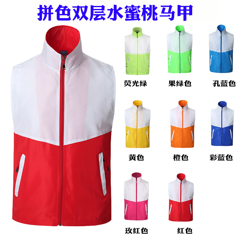 三 拼色双层水蜜桃马甲(口袋有拉链) 空白衣服18元 印制看图报价