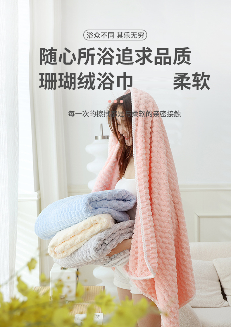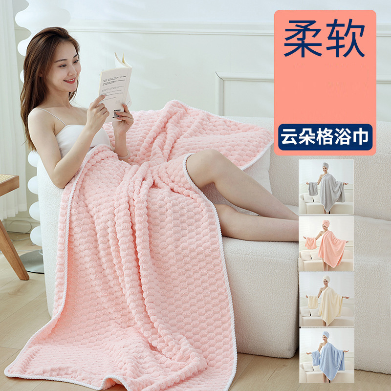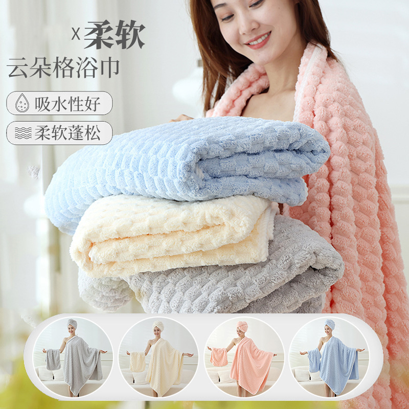Набор полотенец и шапочки для душа из кораллового флиса с узором «облака», оптом от производителя, утолщенный, впитывающий, нелиняющий, большой размер.