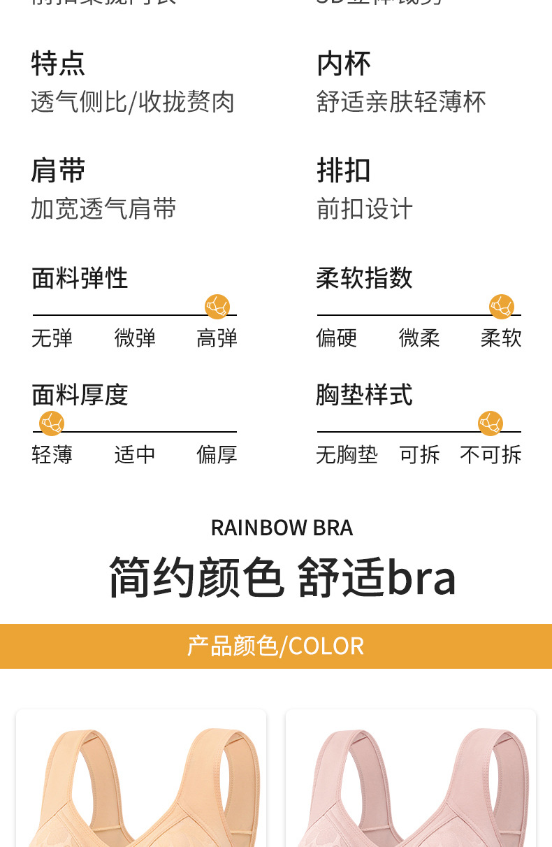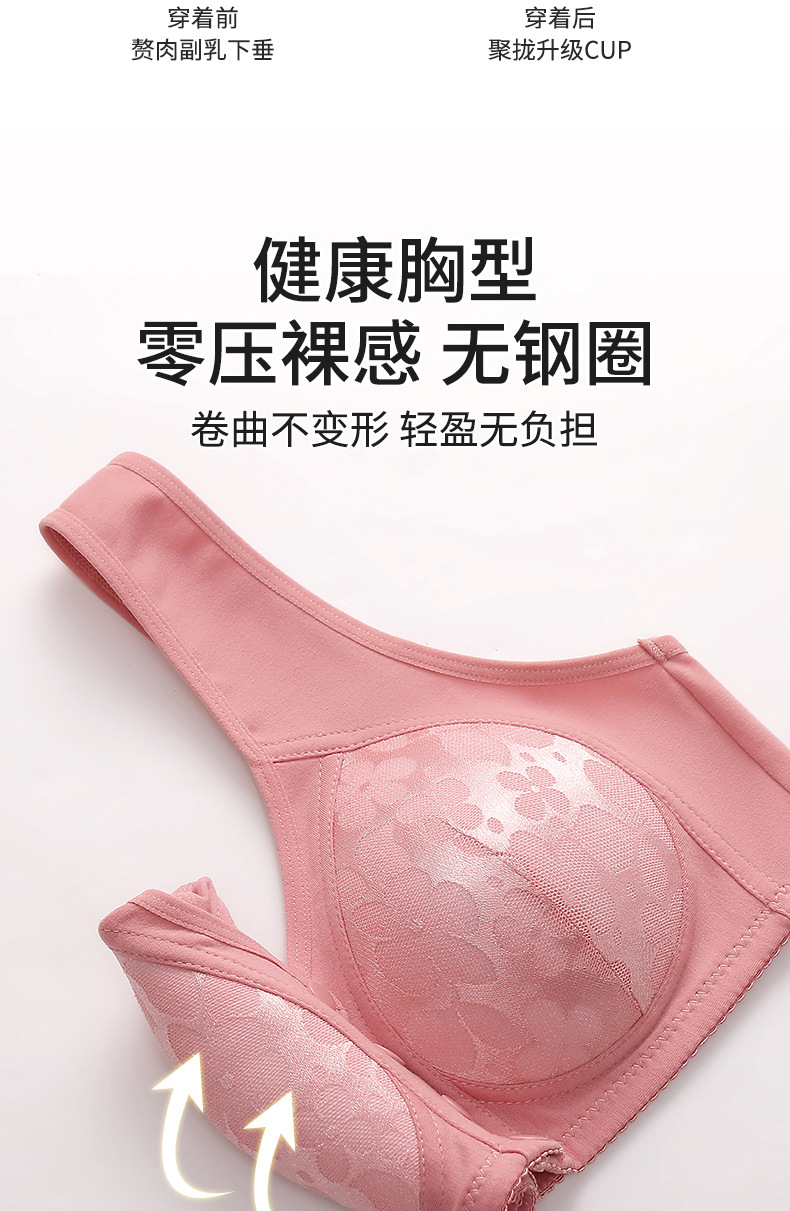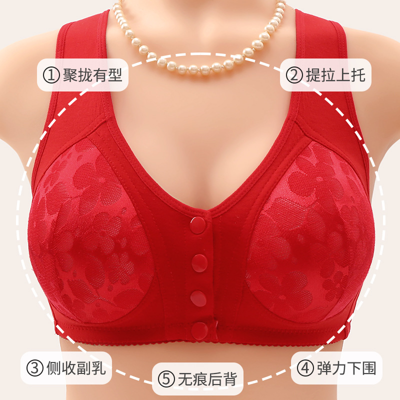 Передняя пряжка Фиксированный средний и пожилой мамы бюстгальтер без стального кольца большого размера
