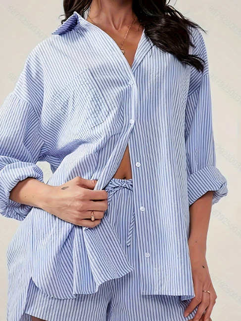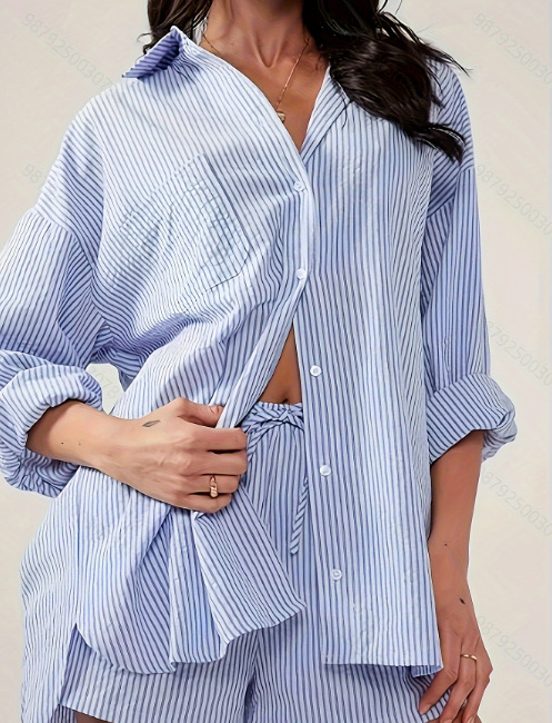 Amazon трансграничная европейская и американская внешняя торговля осенью новый простой темпераментный полосатый свободный повседневный рубашка с длинными рукавами