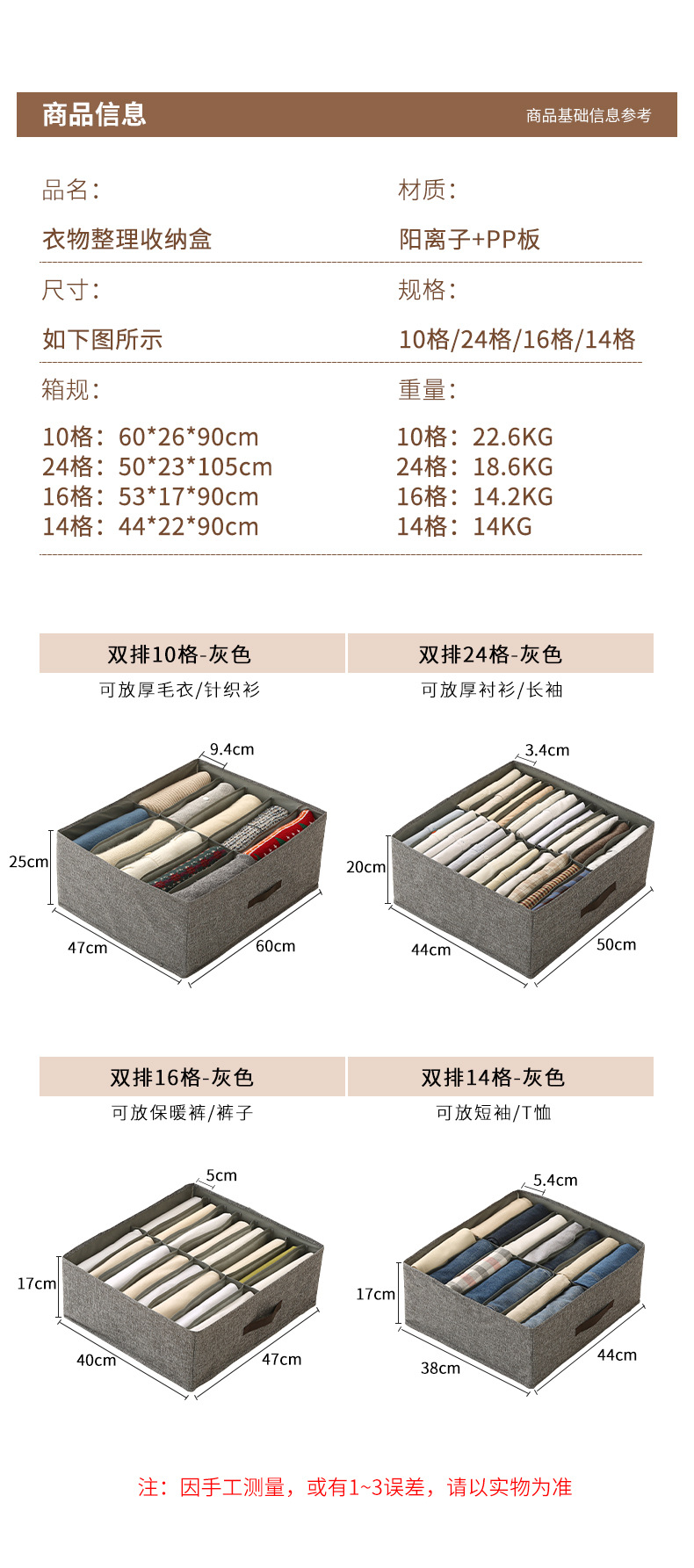 14 сеток серый 44*38*17 см; 14 сеток бежевый 44*38*17 см; 16 сеток серого 47*40*17 см; 16 сеток бежевый 47*40*17 см; 10 сеток серого 60*47*25 см; 10 сеток бежевый 60*47*25 см; 24 сетка серый 50*44*20 см; 24 сетка бежевая 50*44*20 см