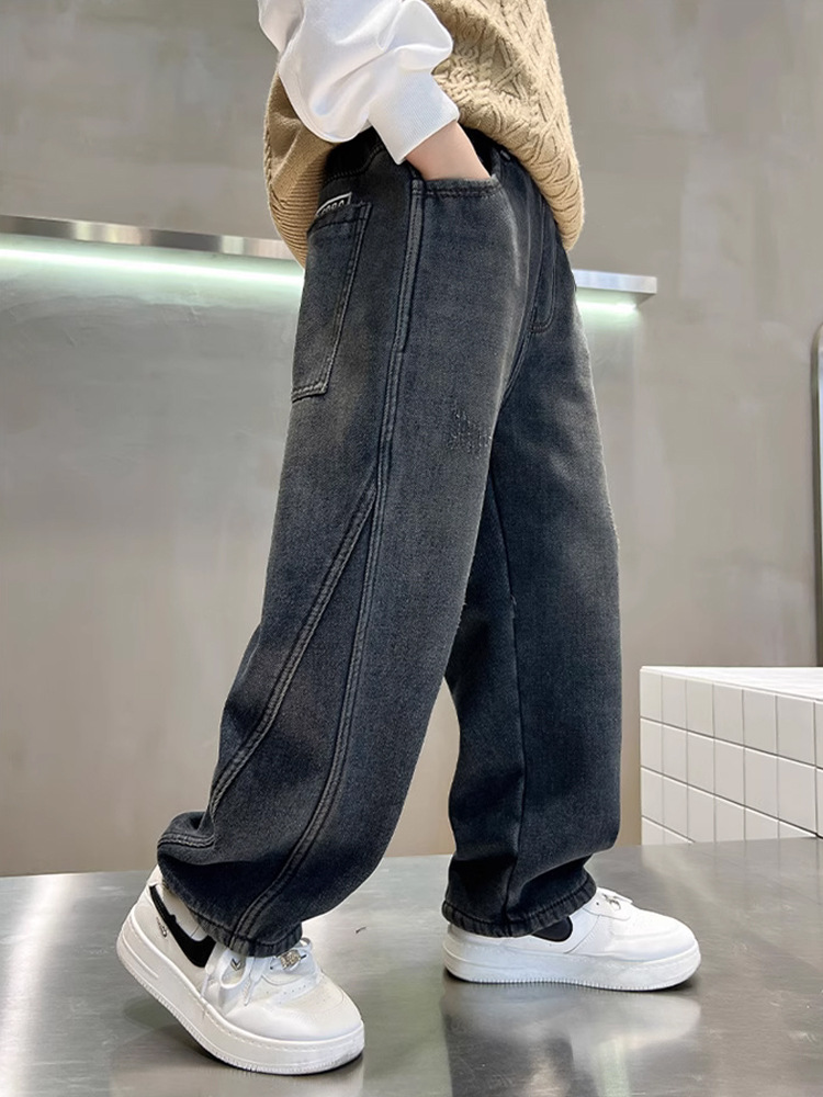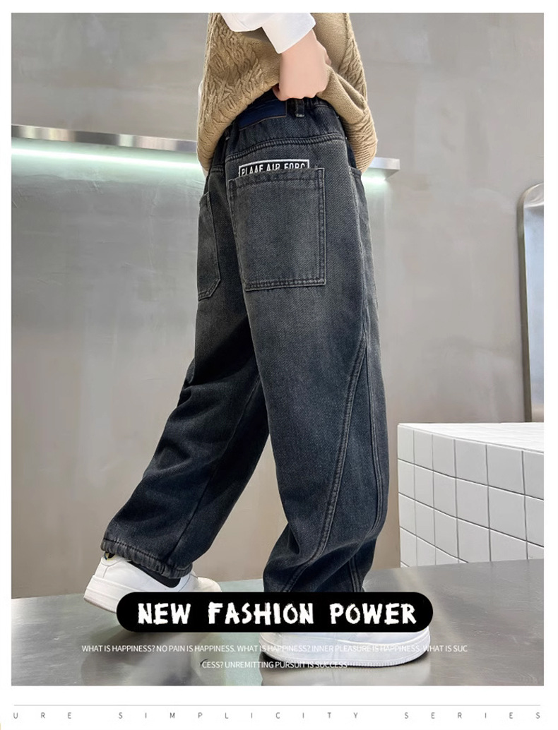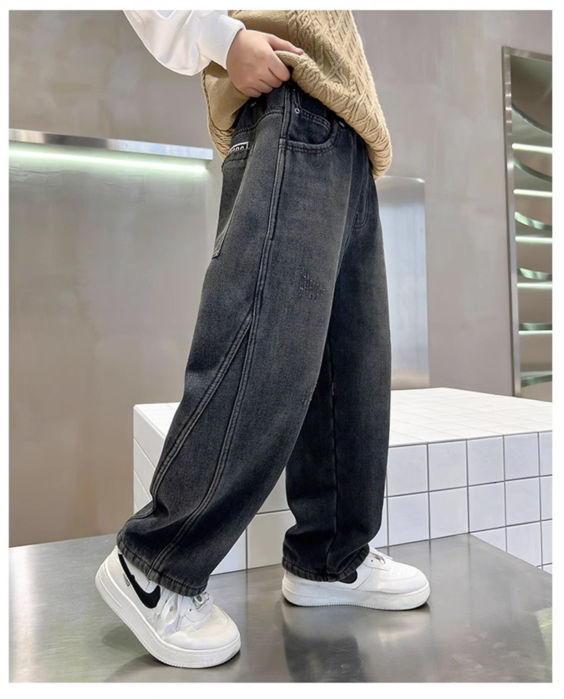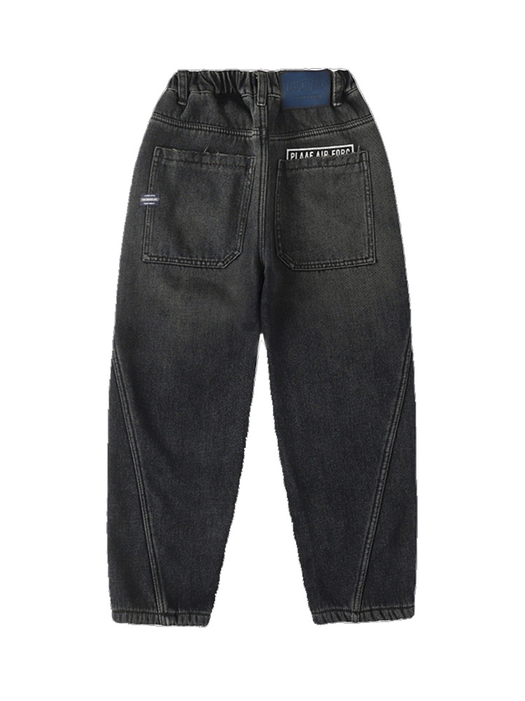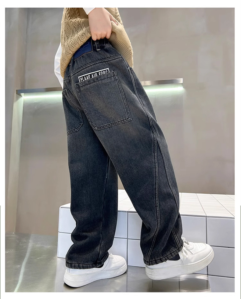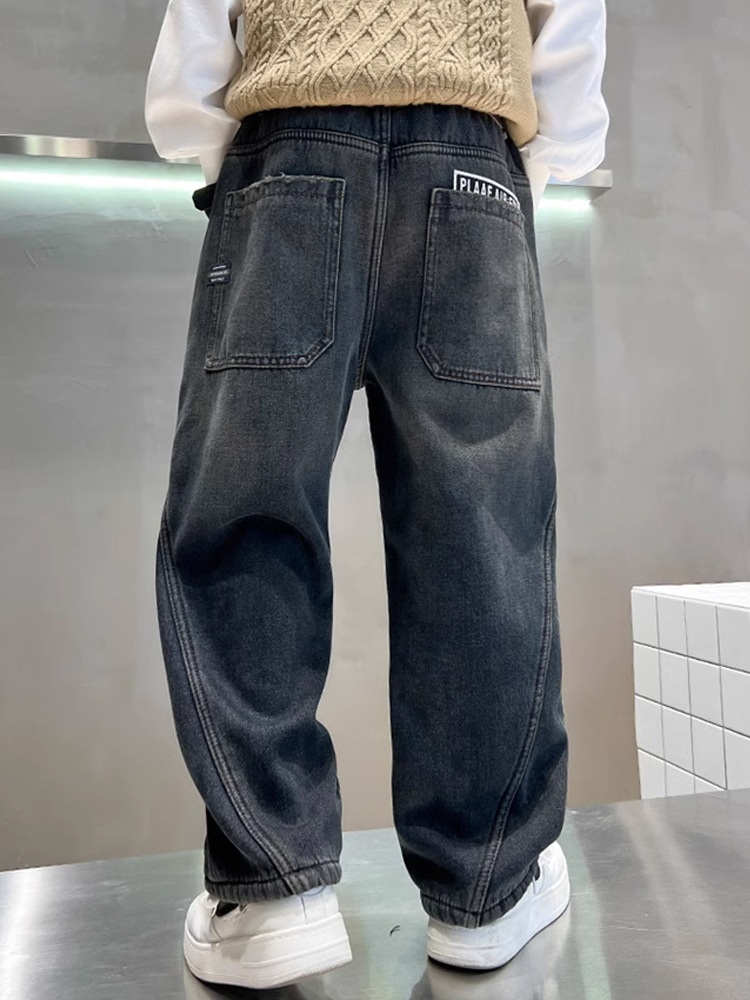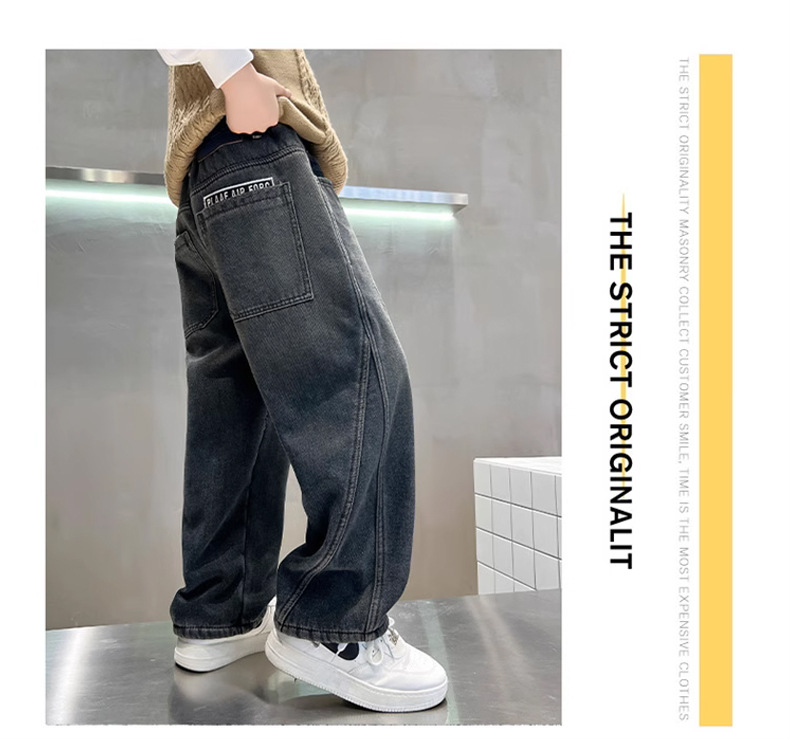 Джинсы для мальчиков, весна-осень, новые детские брюки прямого кроя, свободные черные спортивные повседневные брюки для осени и зимы