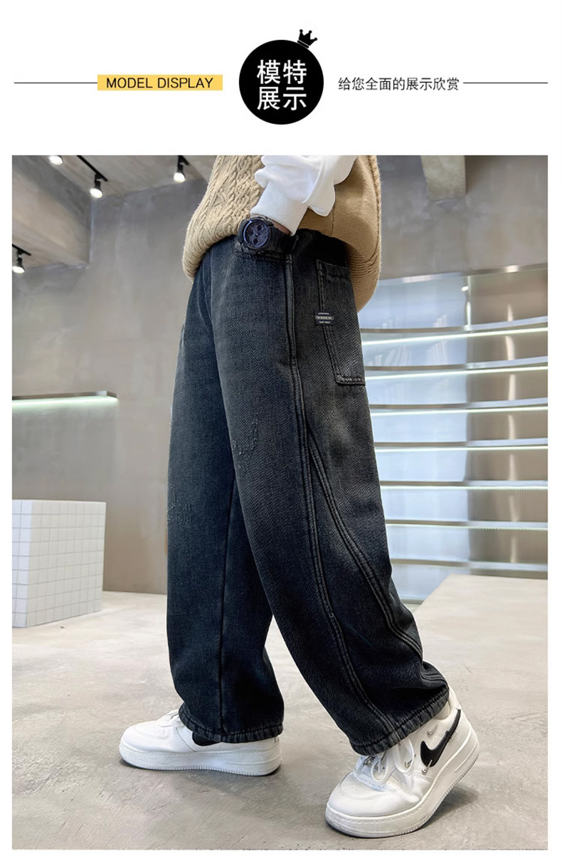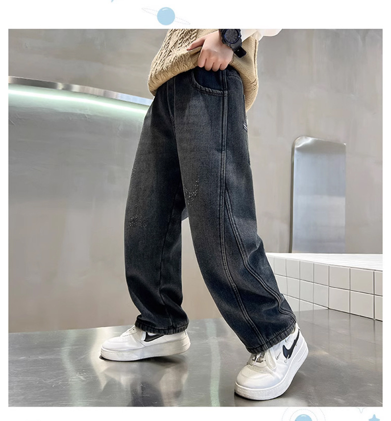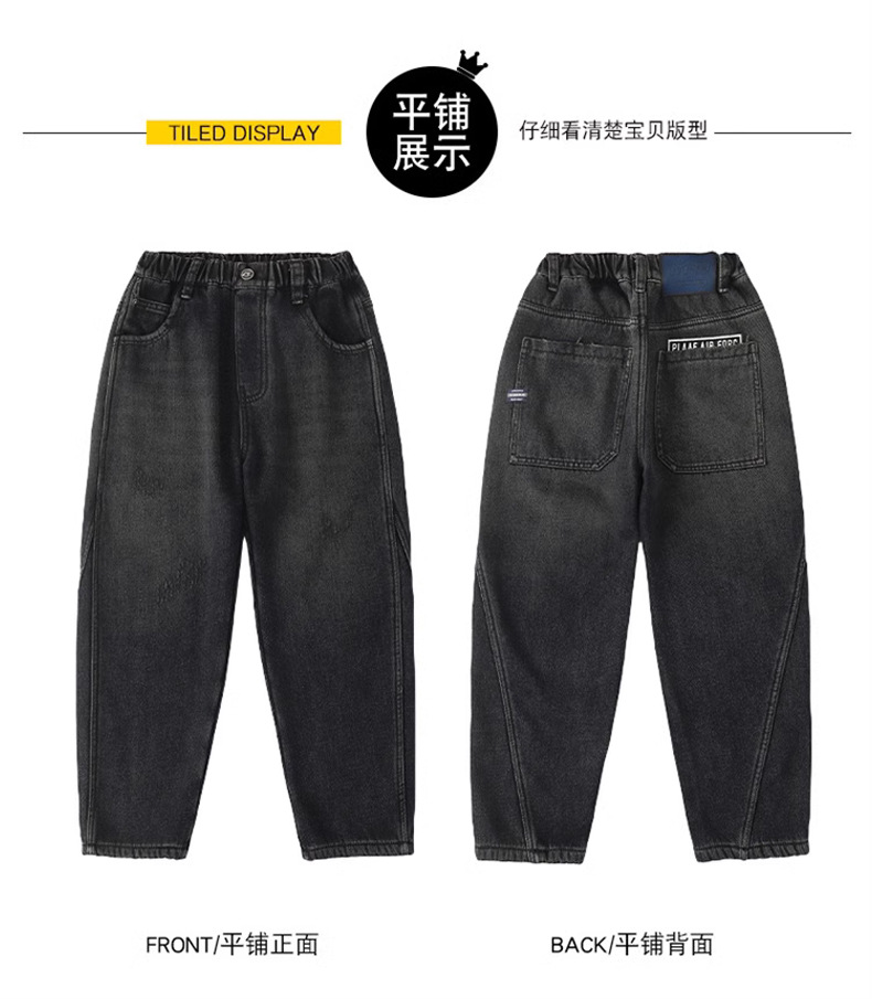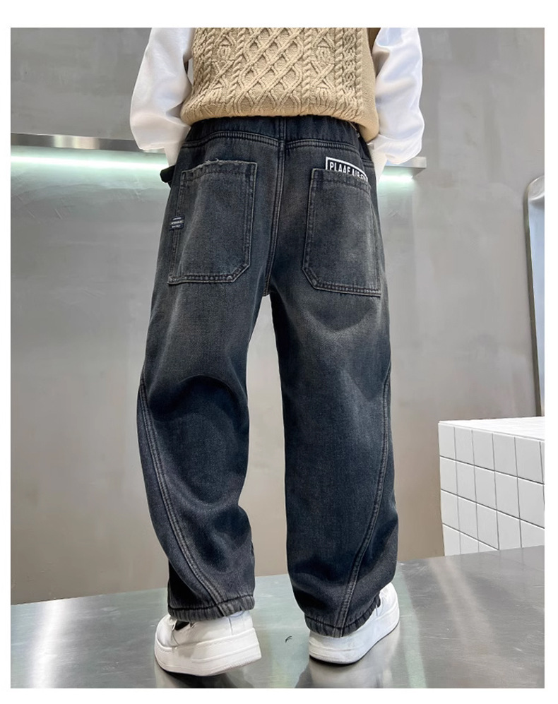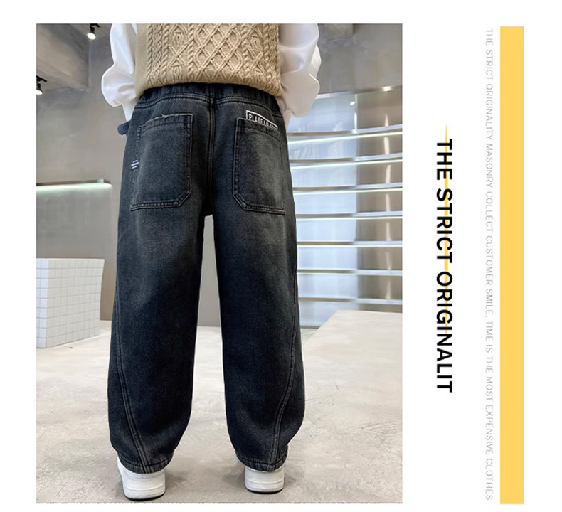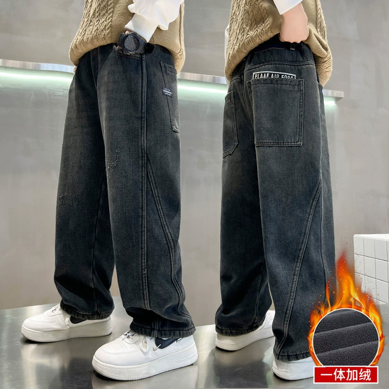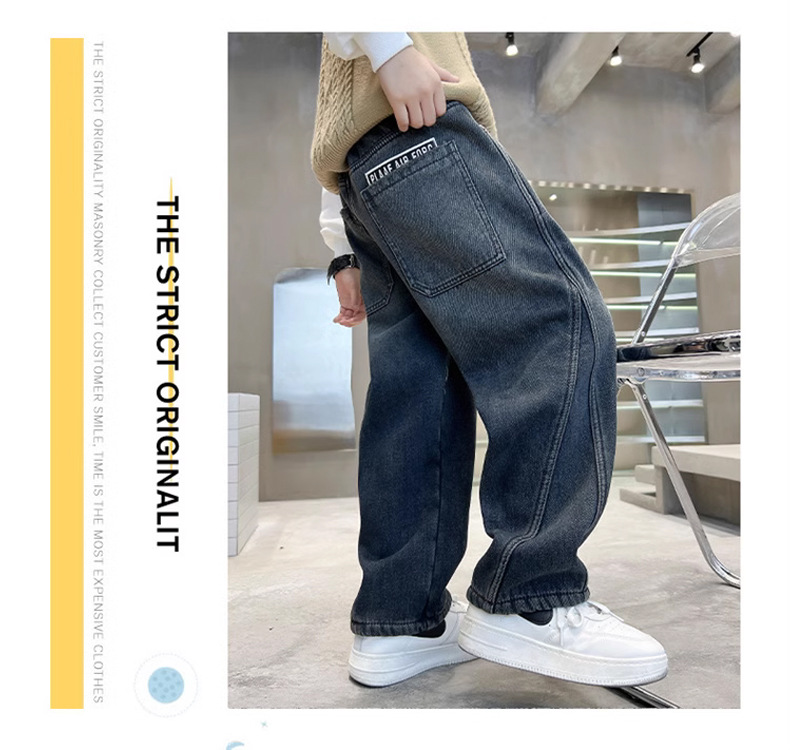Джинсы для мальчиков, весна-осень, новые детские брюки прямого кроя, свободные черные спортивные повседневные брюки для осени и зимы