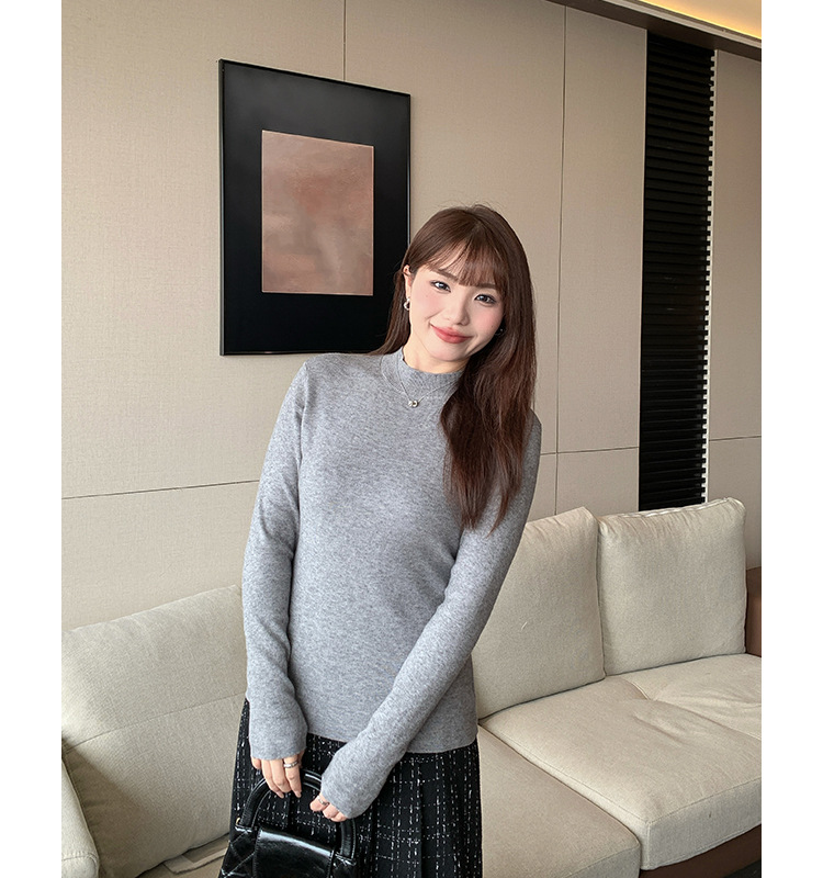 Простой дикий мягкий вязаный свитер зимний толстый мм большой размер женский пол-высокий воротник тощий топ 65089