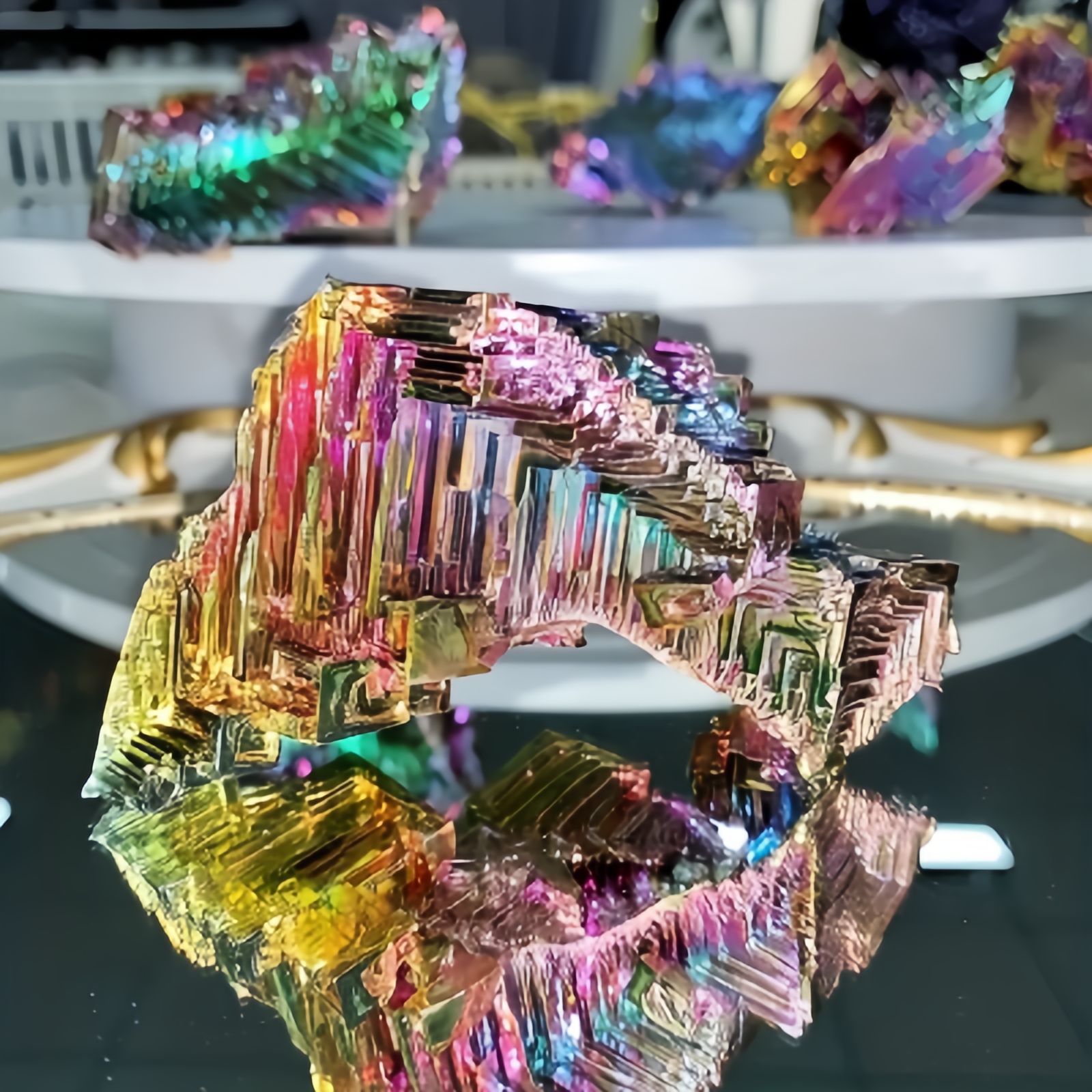 Бисмутовая руда, кристаллы бисмута, минеральный химический элемент, руда, декоративный металл, образец минерала, уникальное каменное украшение, энергетический кристалл, белый кристалл
