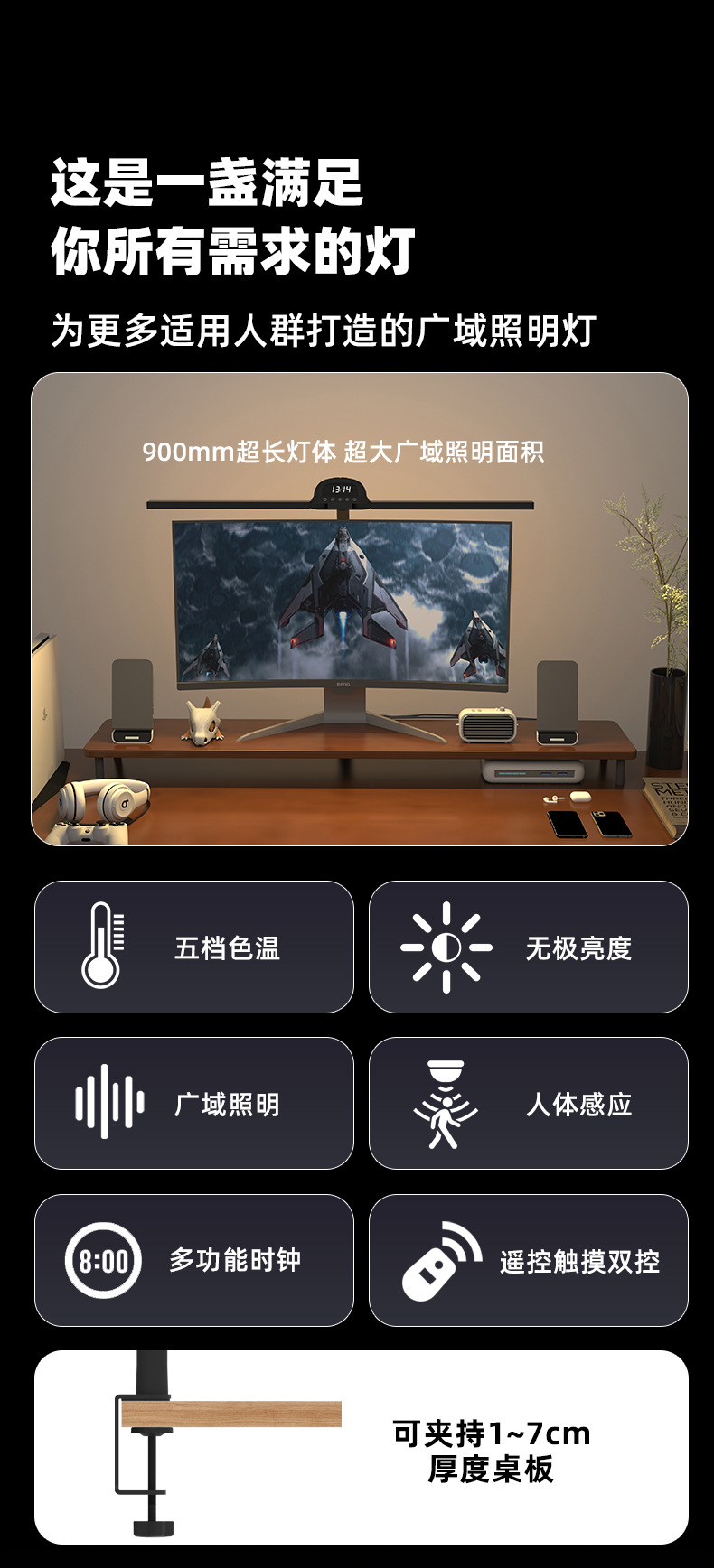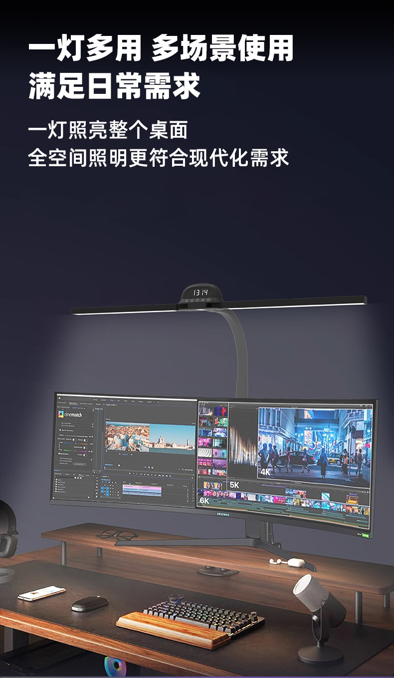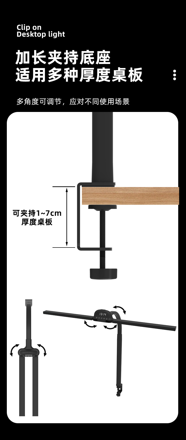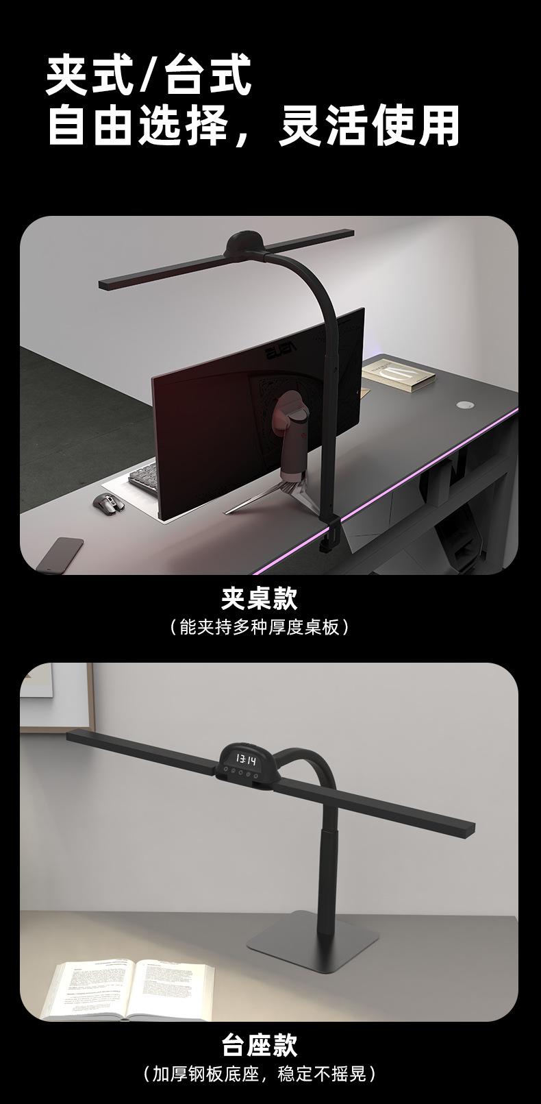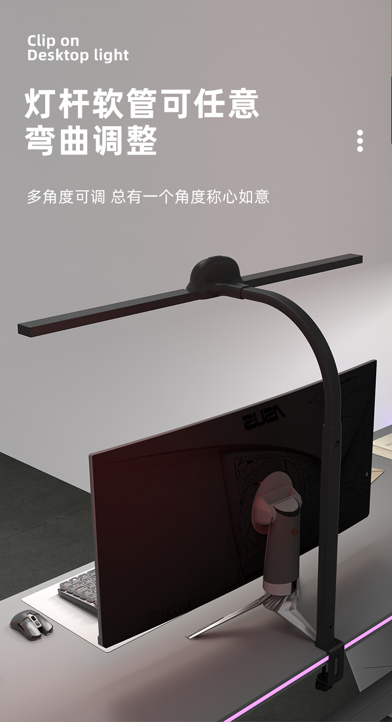 Трансграничный взрывной дисплей заполняет настольную лампу с двумя зажимами с длинными руками Настольная лампа дистанционного управления для защиты глаз Компьютерная лампа экрана
