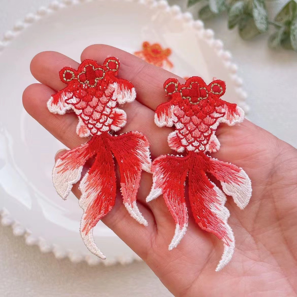 Древний стиль золотой рыбки вышитая ткань наклейки кои Ханфу национальная ветровка одежды наклейки diy декоративные аксессуары наклейки