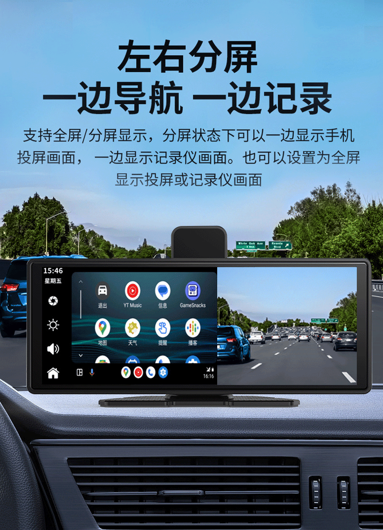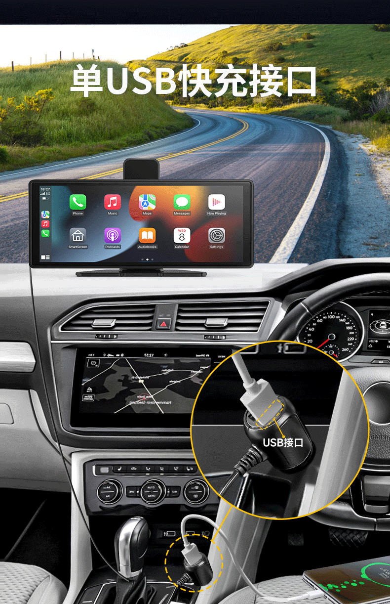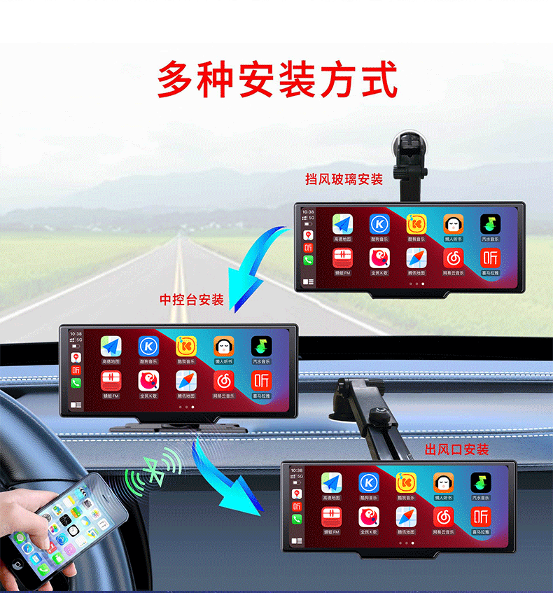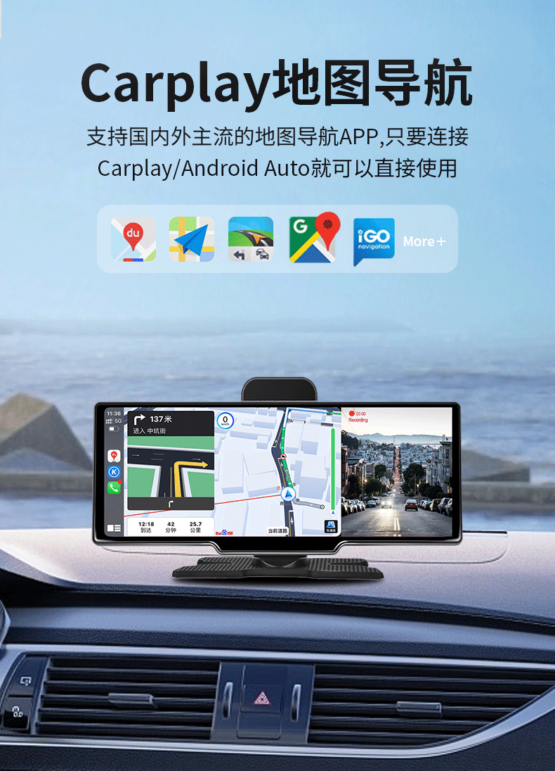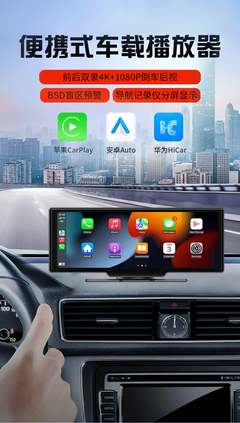 10.26inch Беспроводной портативный экран Carplay, автомобильный видеорегистратор, HD-навигатор с большим экраном и возможностью подключения к сети