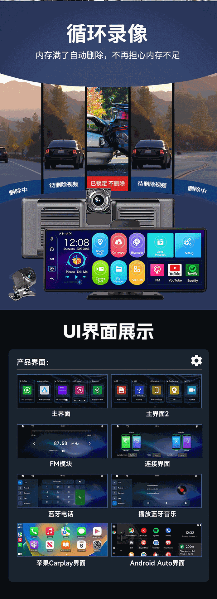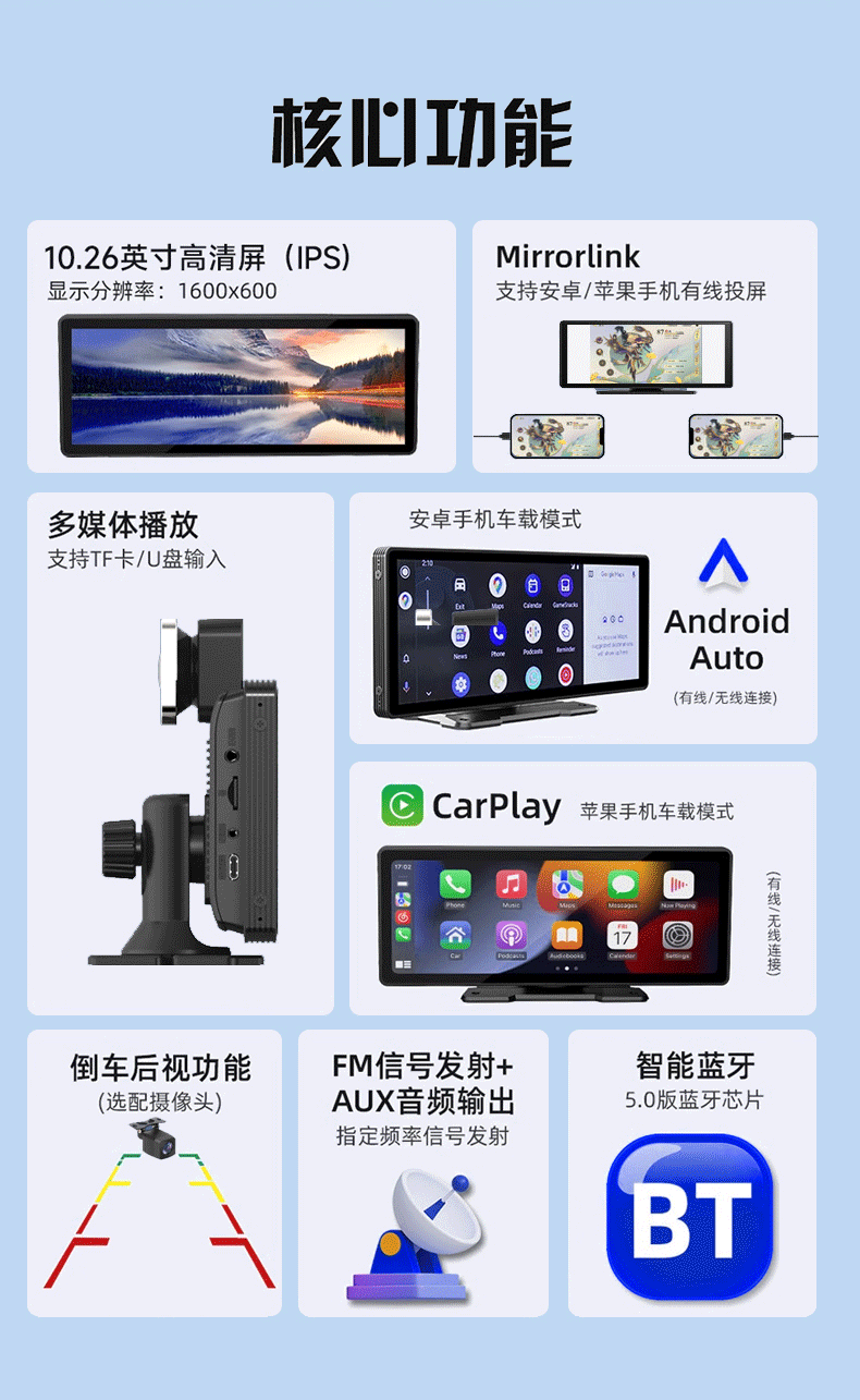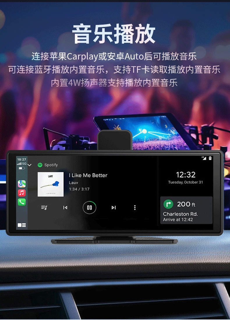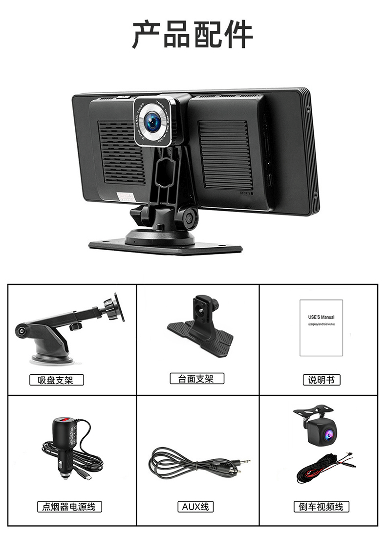 10.26inch Беспроводной портативный экран Carplay, автомобильный видеорегистратор, HD-навигатор с большим экраном и возможностью подключения к сети
