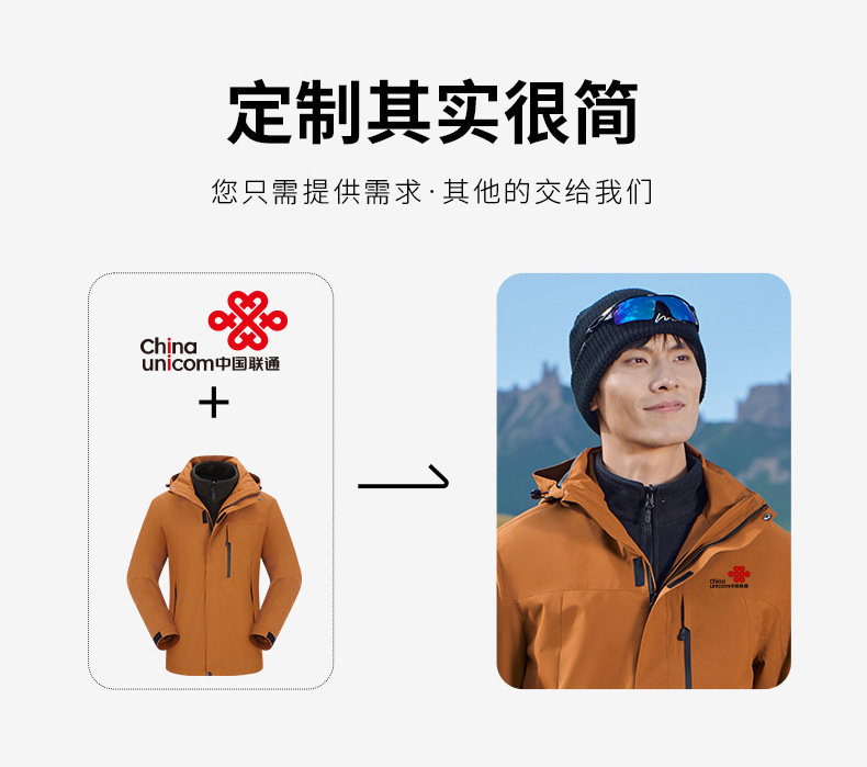 Куртка 3-в-1 съемная, водонепроницаемая и морозостойкая, для альпинизма и катания на лыжах, групповая спецодежда с вышитым логотипом, утолщенная и ветрозащитная.