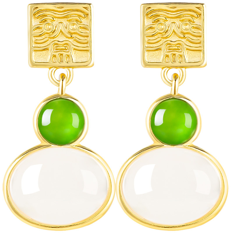 Серьги из хетианского нефрита и яшмы (с сертификатом) D437