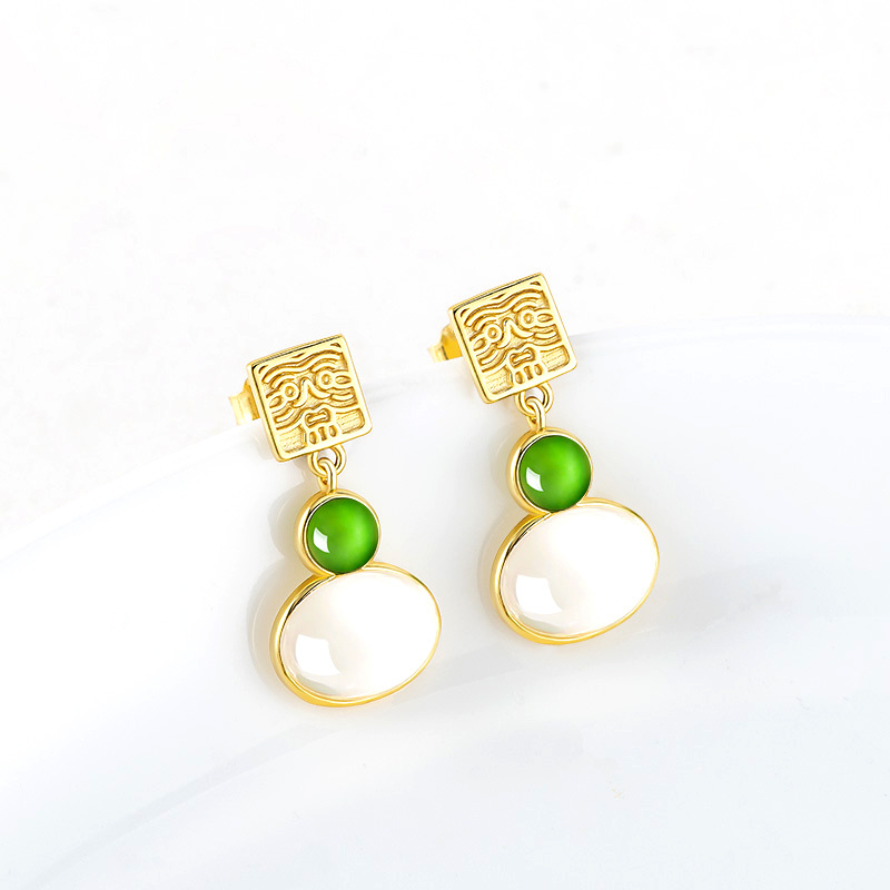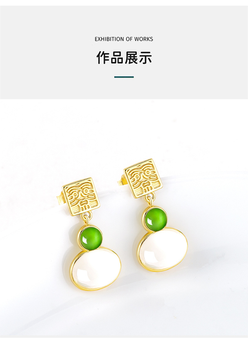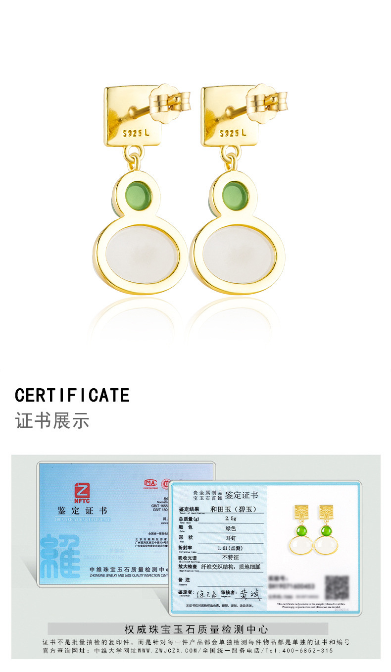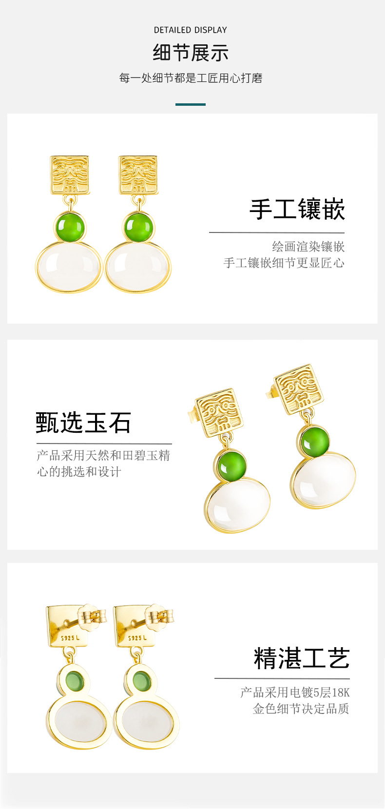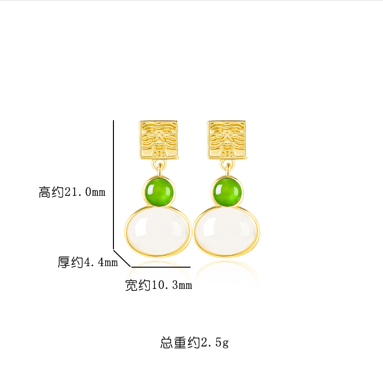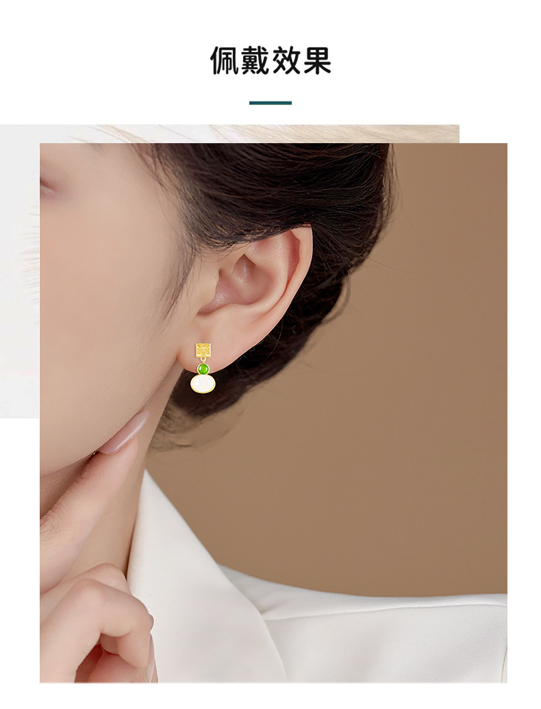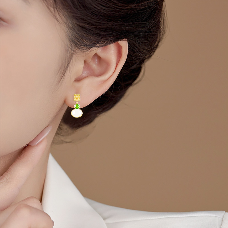 Подлинный натуральный старый материал Hetian Jade Jade серьги серьги женская S925 Серебряная инкрустированная нефритовая темперамент простой серьги серьги