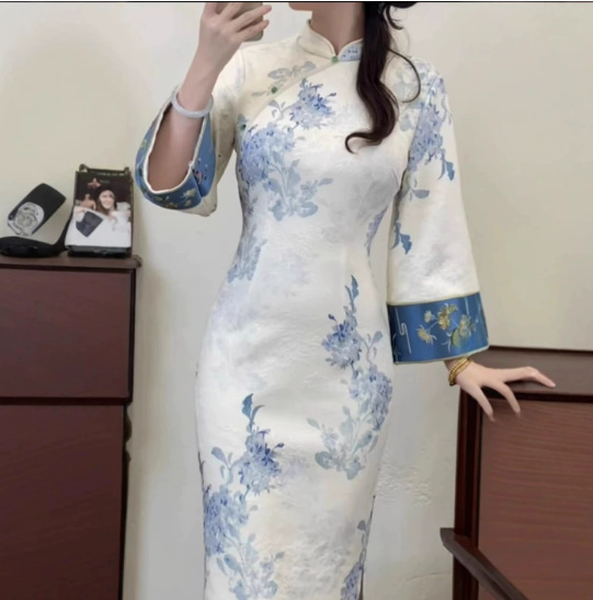 8678 # новое осеннее и зимнее платье в китайском стиле высокого класса трикотажный жаккард с бархатом с улучшенной вышивкой cheongsam