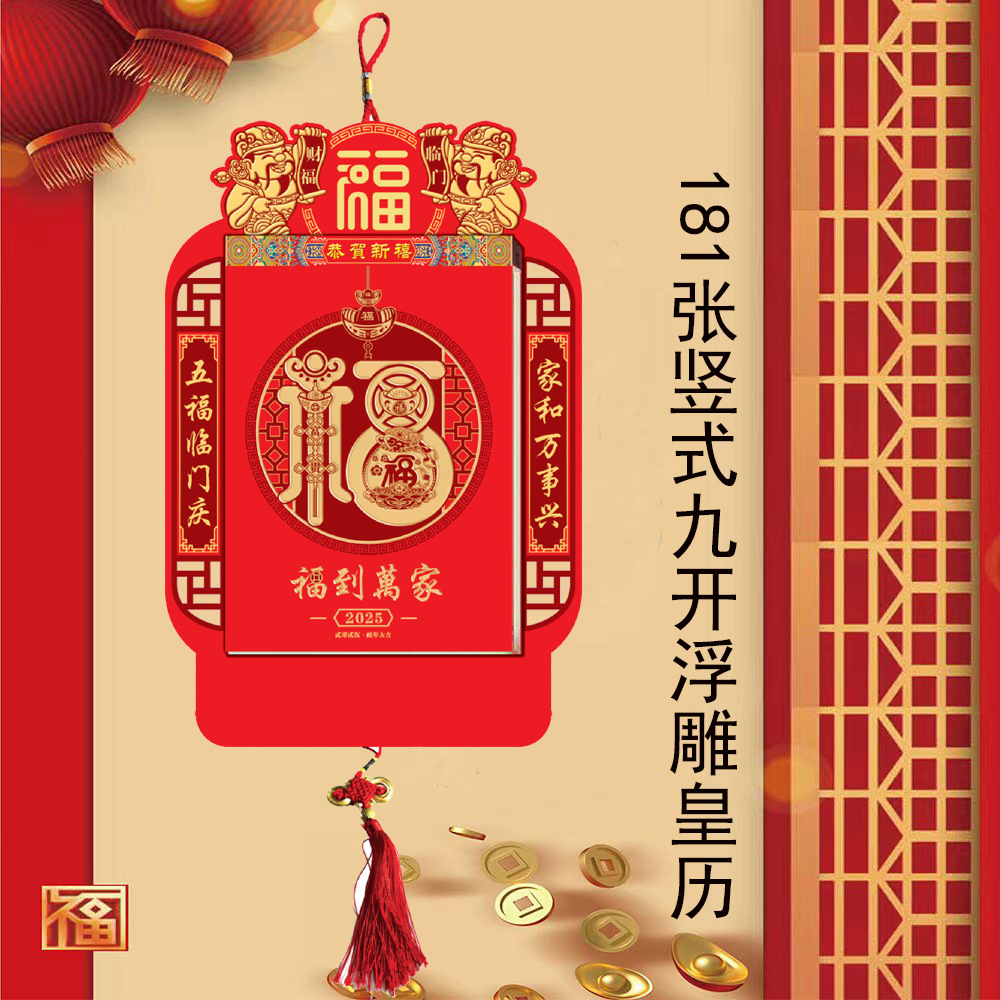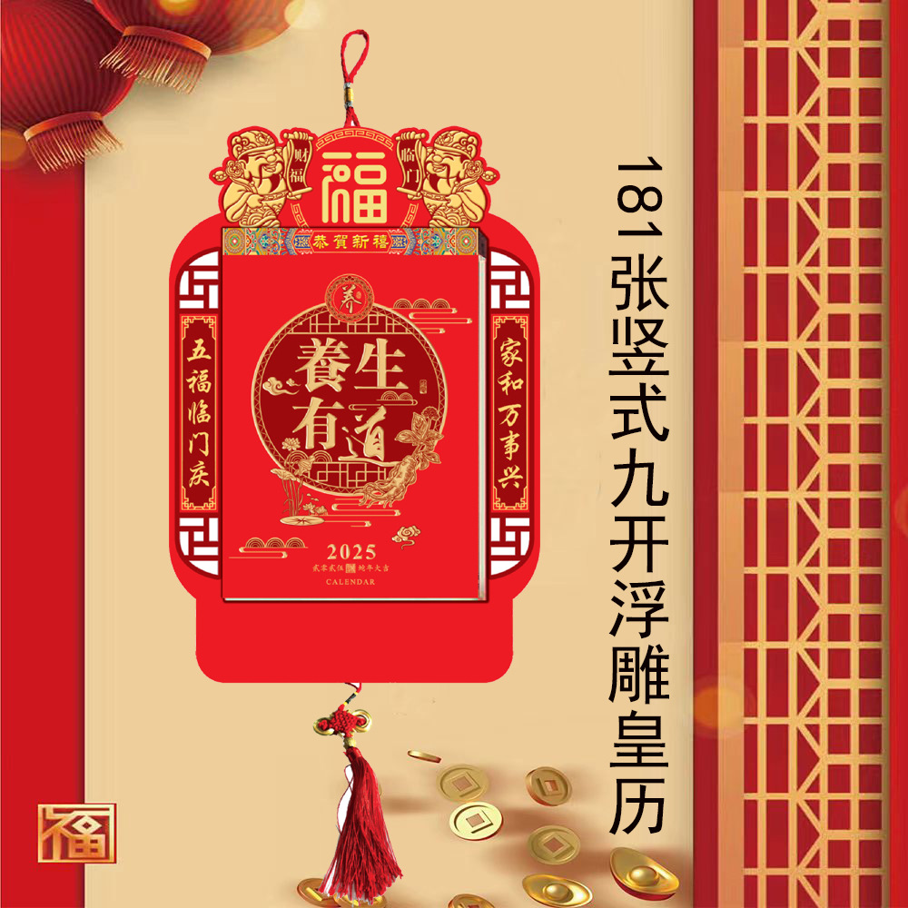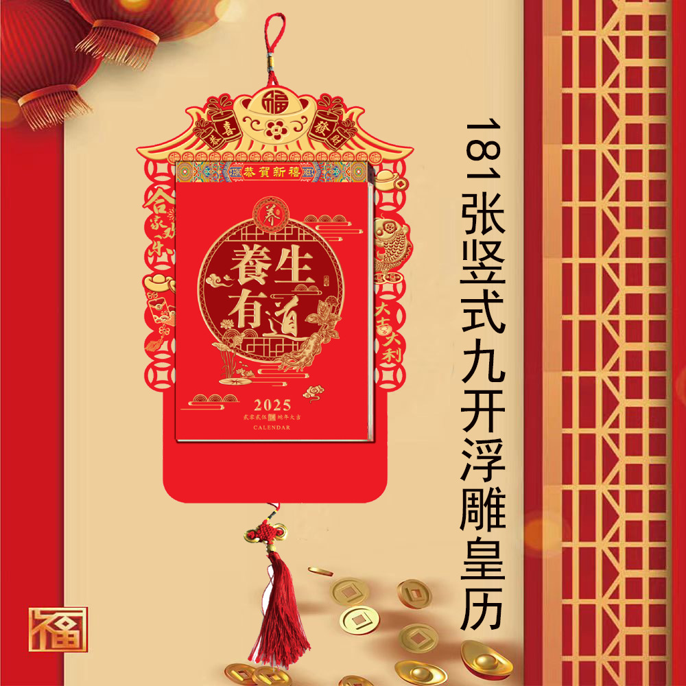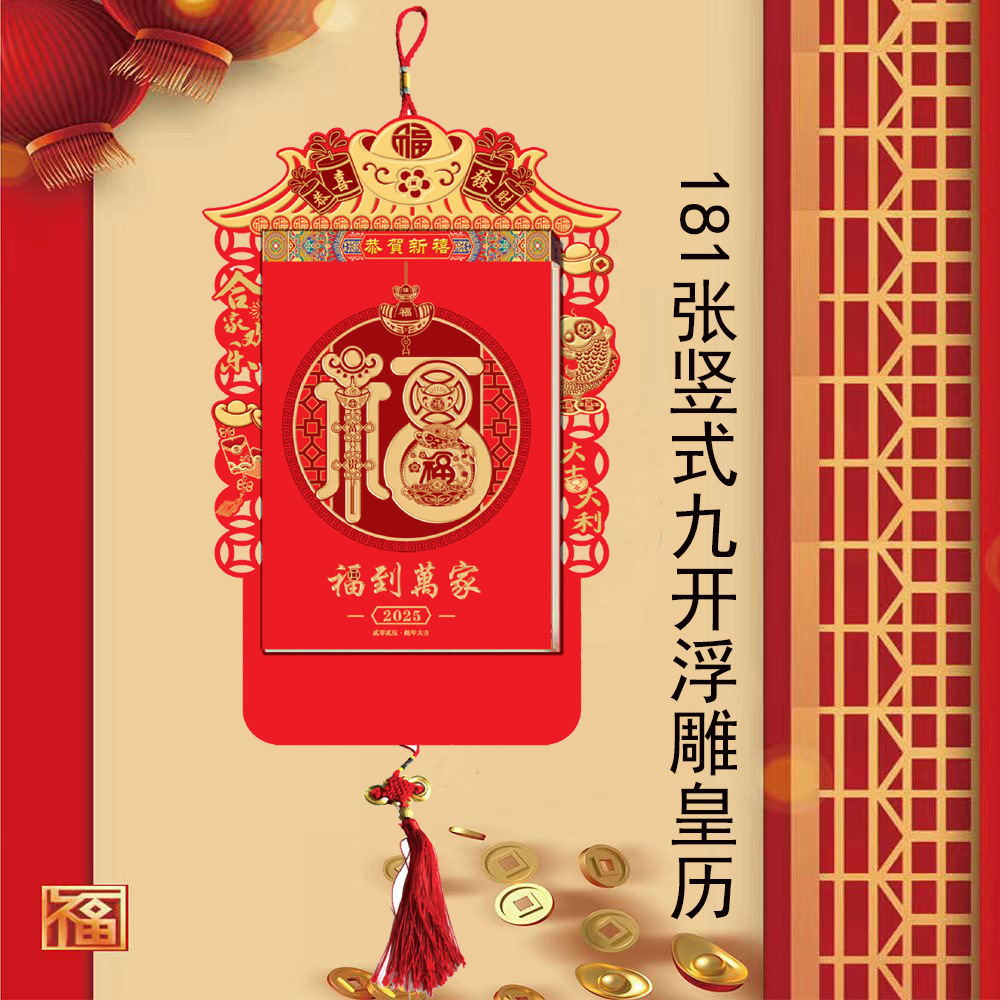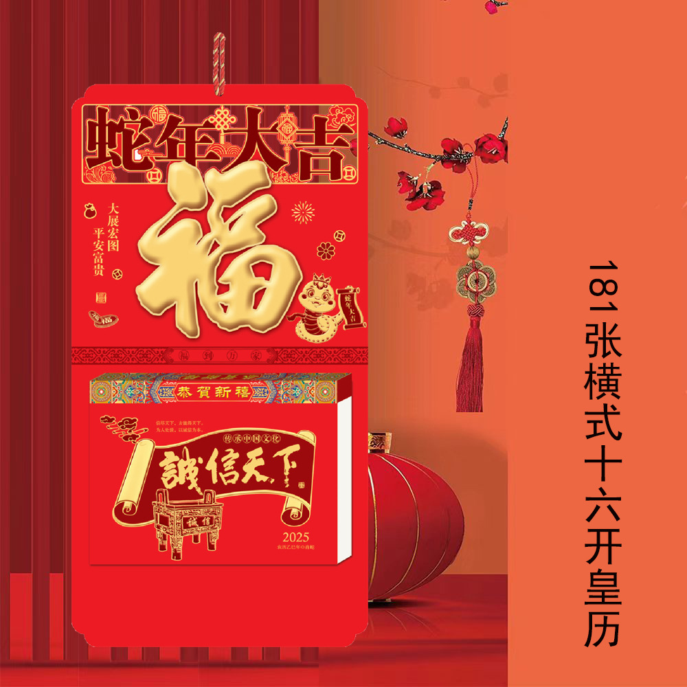 Настенный календарь на 2025 год «Год змеи» Двойной императорский календарь Многофункциональный настенный календарь с золотым тиснением логотипа Отрывной настенный ежемесячный календарь Корпоративный подарочный календарь на Новый год