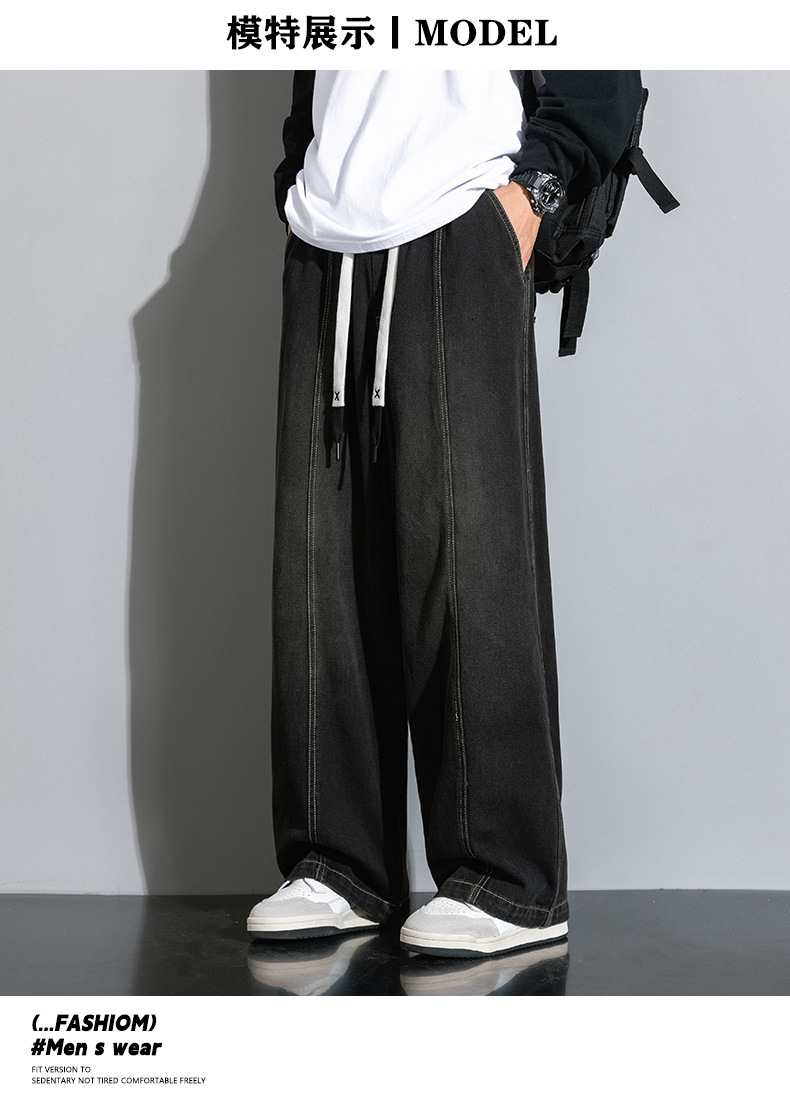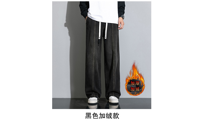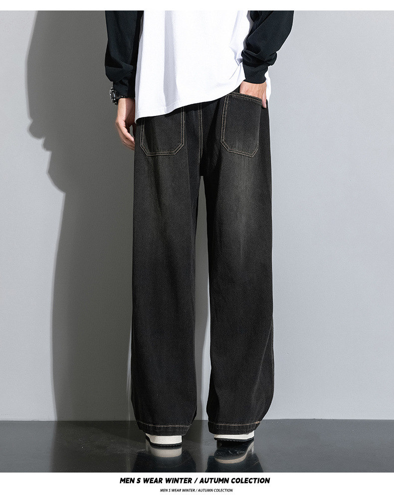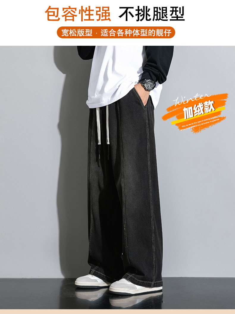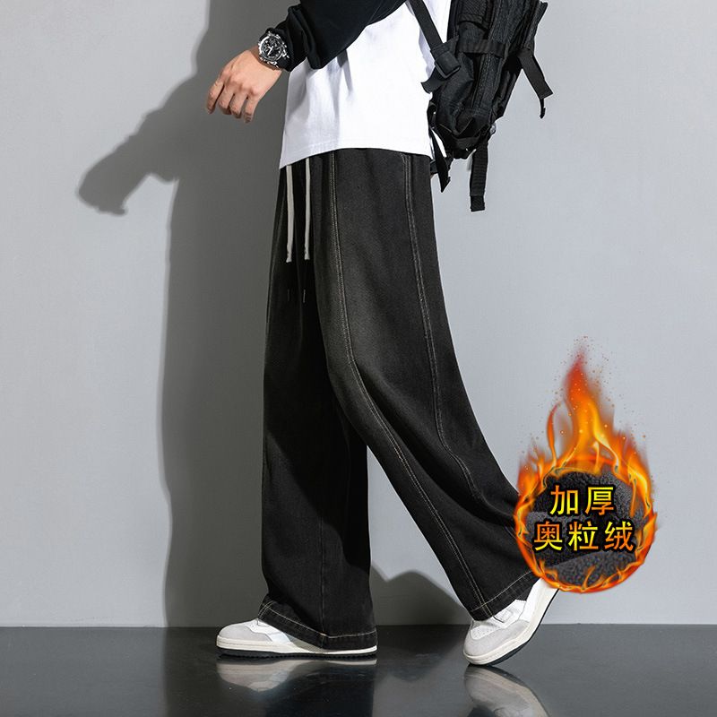 JYF-A205 плюшевые джинсы мужские весенние американские высокие уличные брюки свободные прямые брюки широкие повседневные брюки