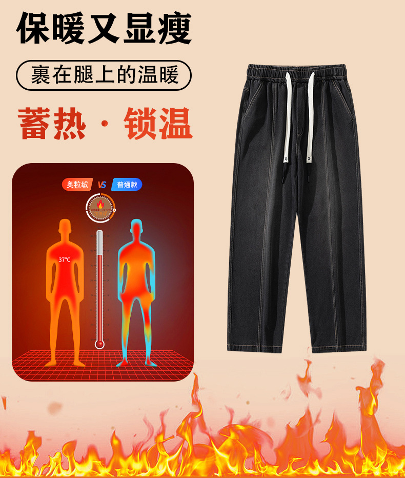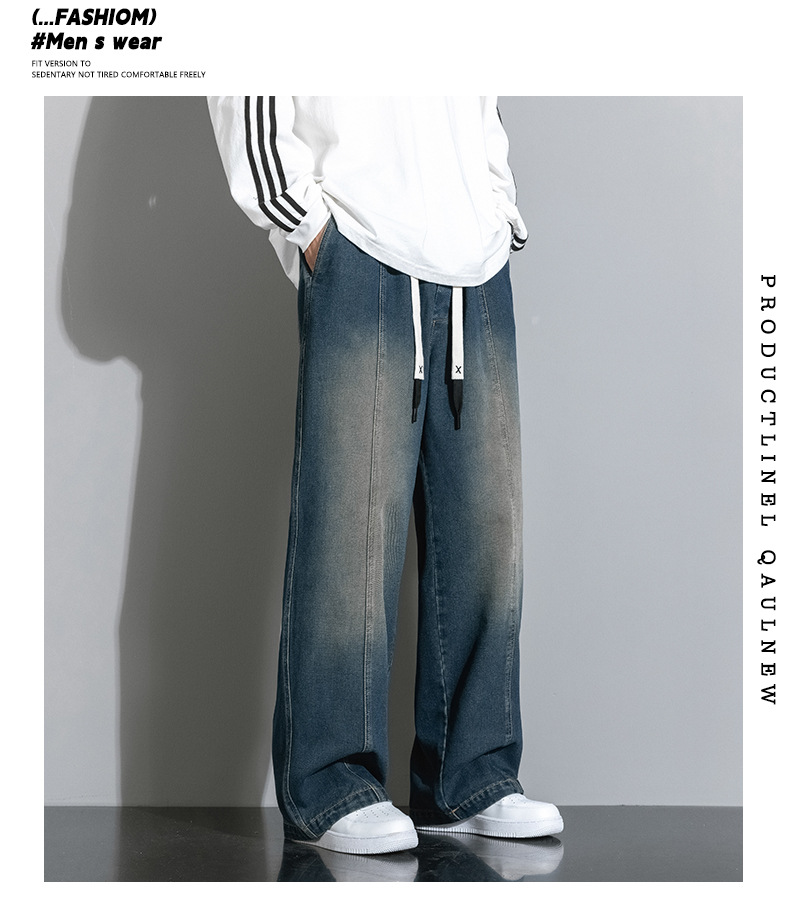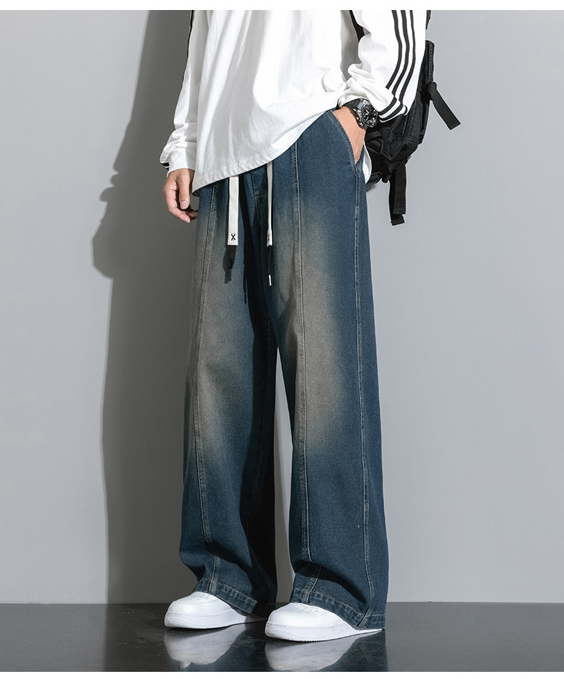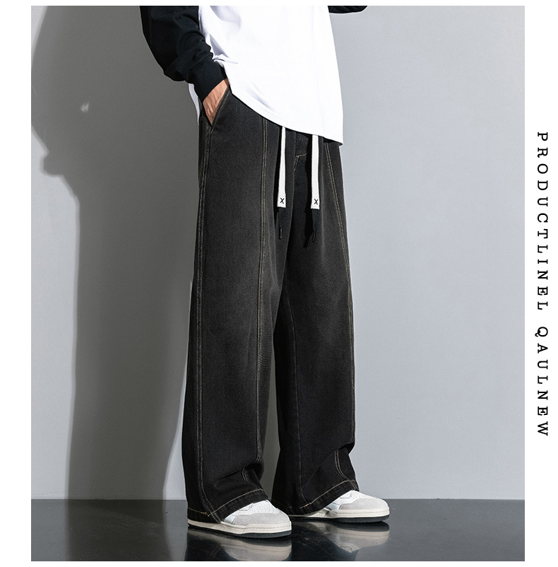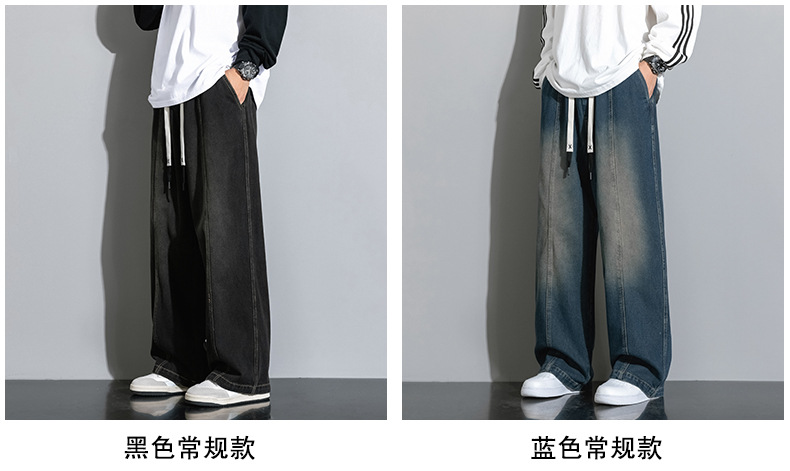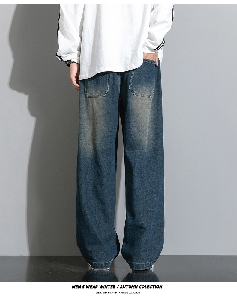 JYF-A205 плюшевые джинсы мужские весенние американские высокие уличные брюки свободные прямые брюки широкие повседневные брюки
