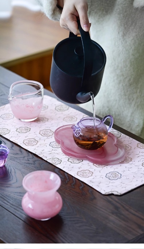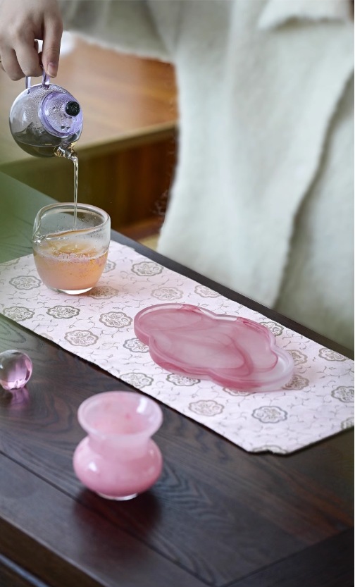 Домашний чернильный горшок с матовым стеклом Бегония Сухая пенопластовая розовая чернильная палочка для чайного сервиза