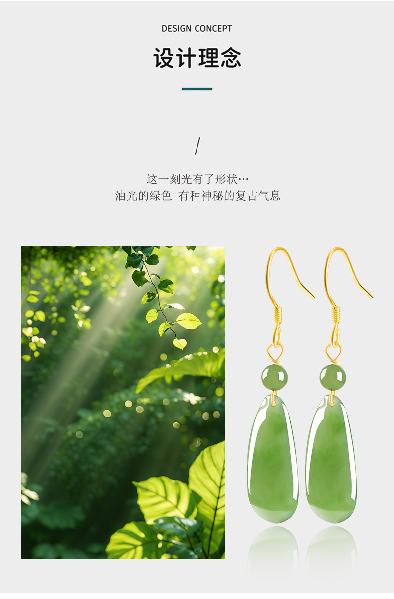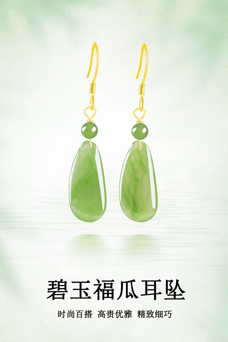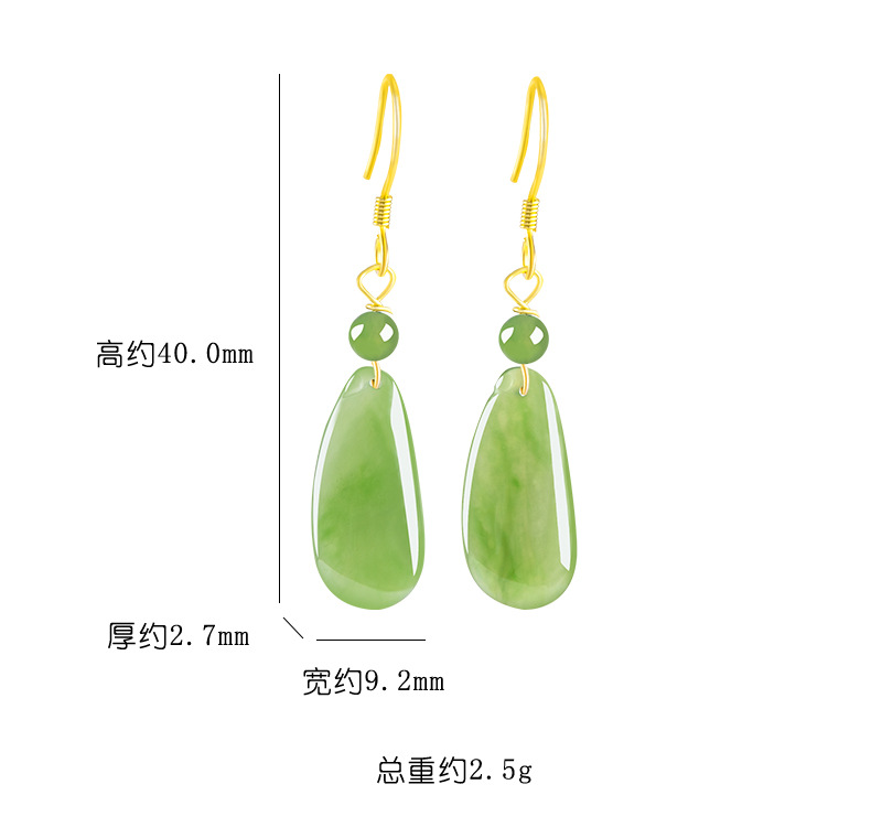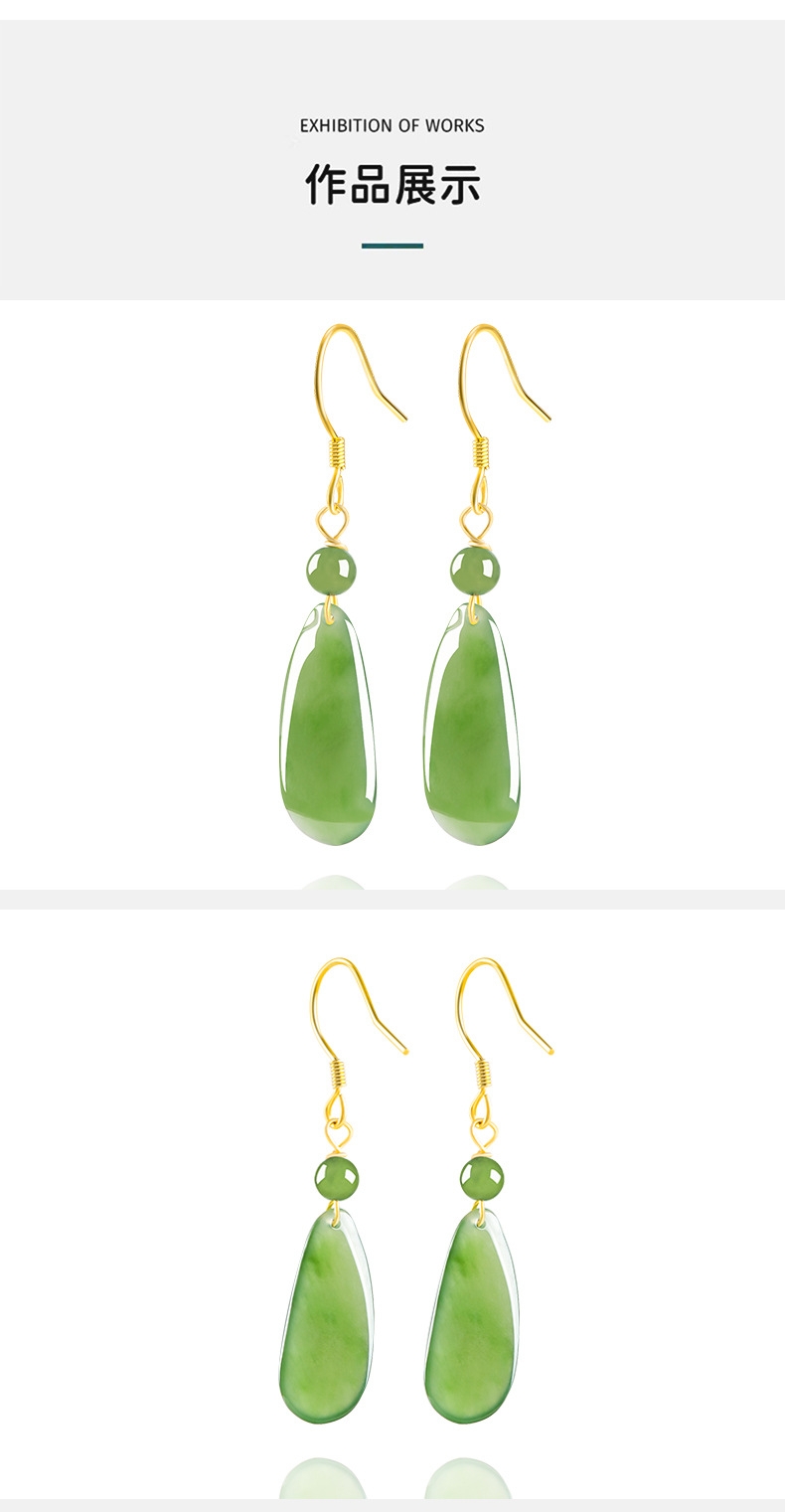 Натуральный шпинат зеленый старый материал Хетиан нефрит яшма фордыня серьги женский подлинный S925 Серебряная инкрустированная нефритовая серьга