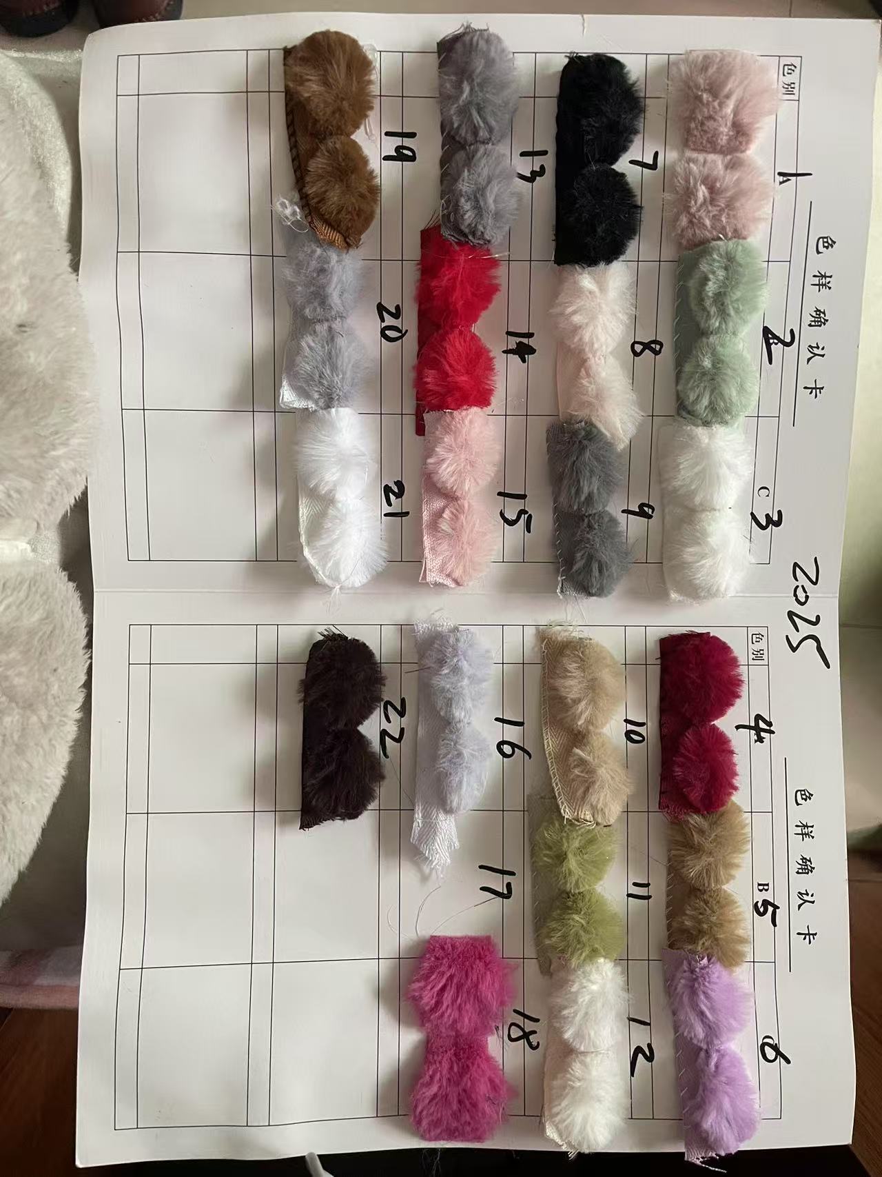 №1 светло-розовый; № 2 Зеленый; 3 белых; 4 вина красного цвета; 5 темный верблюжий; 6 светло-фиолетовый; 7 черный; 8m цветов; 9 серый; 10 верблюдов; 11 зеленых бобов; 12m белый; 13 средне-серый; 14 красных; 15 корейская пудра; 16 светло-серый; 18 розово-красный; 19 коричневый; 20 средне-серый; 21 отбеливание; 22 темно-коричневый