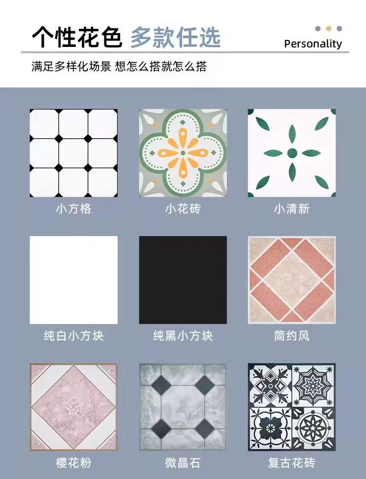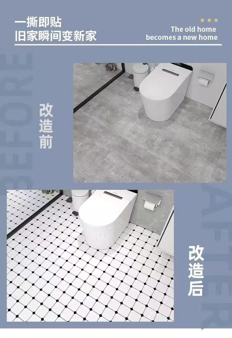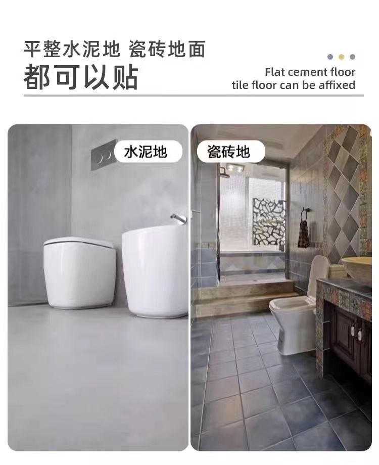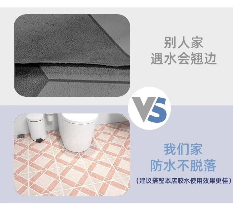 此款是自带背胶防水地贴,有个别客户收到货有粘不住的情况,比如那种表面特殊处理的马赛克凹凸纹的瓷砖,或者毛坯没有收光容易起灰掉渣的水泥地面会有这种情况,可以联系客服配专用胶水进行先处理之后在贴,如有这种情况请联系客服处理,会帮您完美解决,正常瓷砖地面,收光水泥等平整地面都会粘贴牢固的,祝您购物愉快!