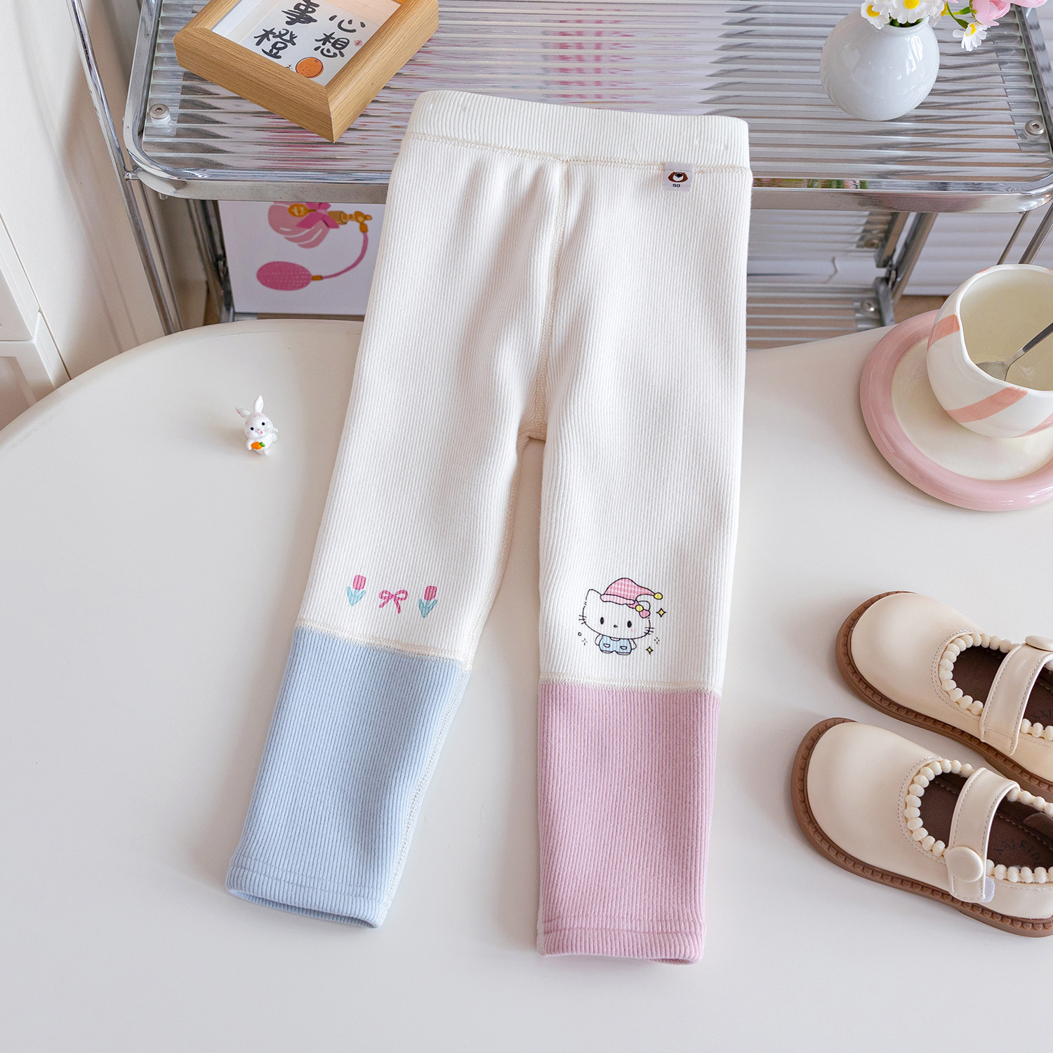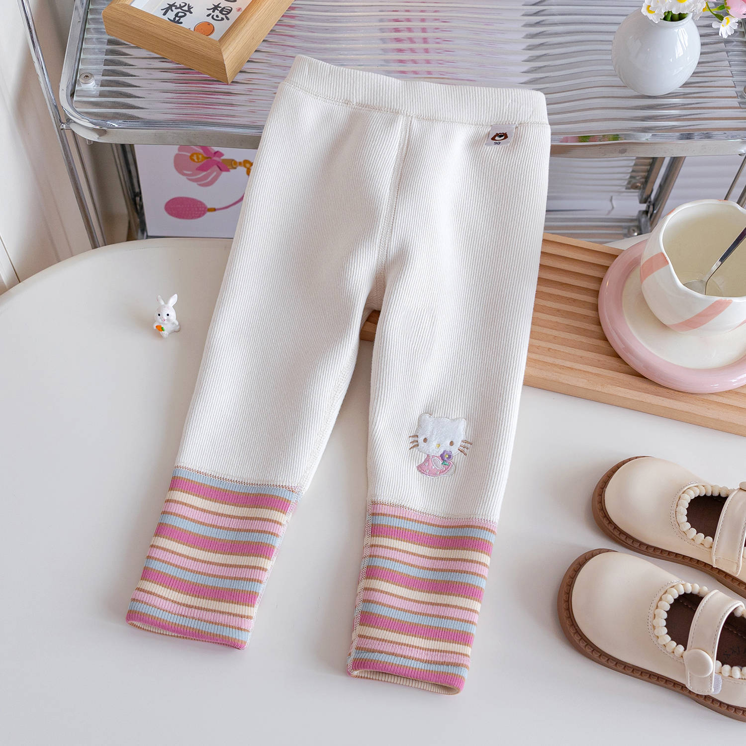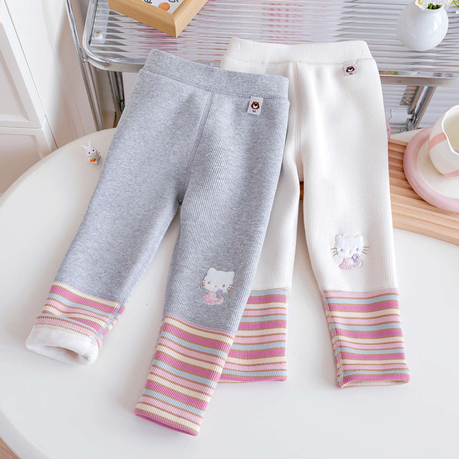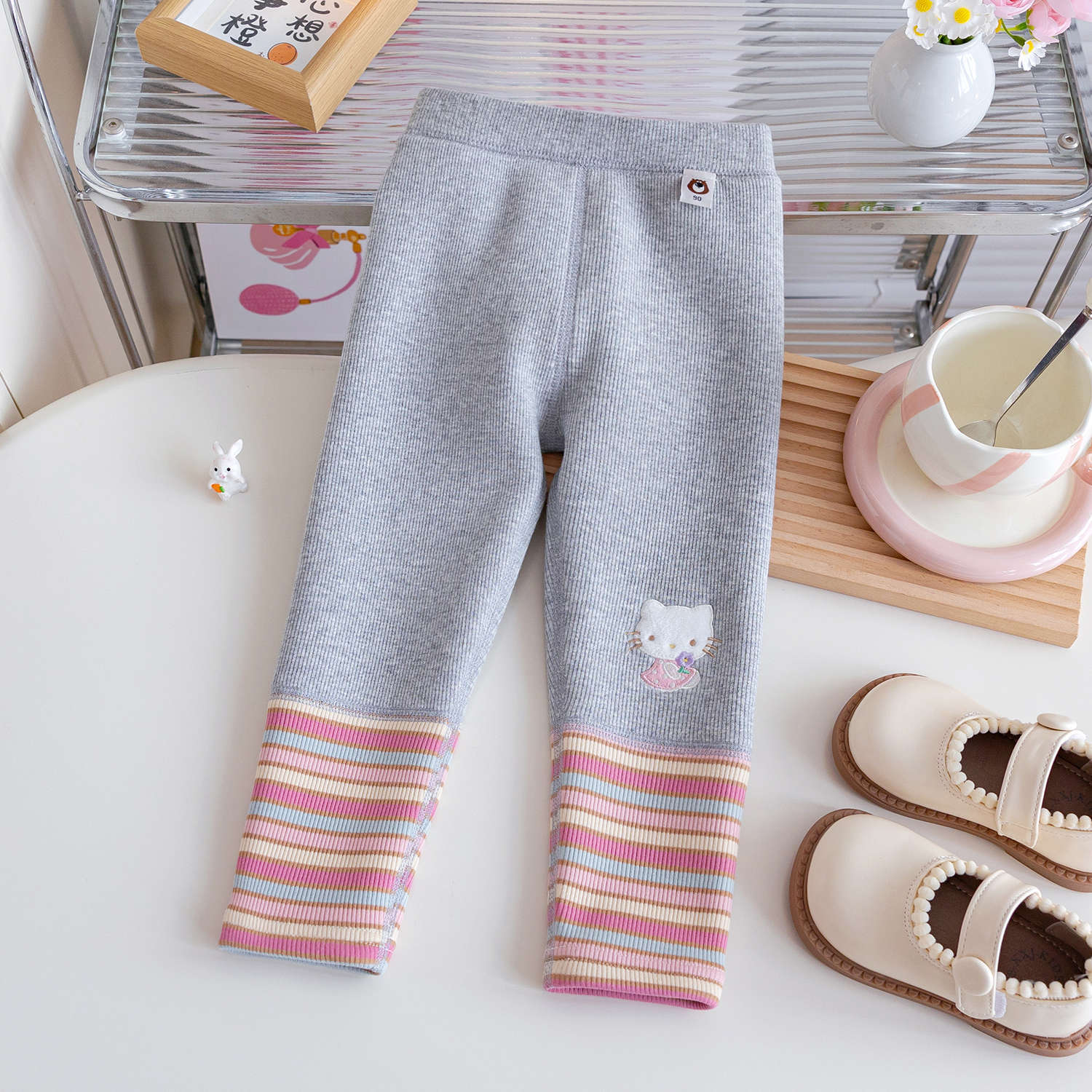 Иностранные девушки осенью и зимой бархатные теплые леггинсы без костей детские модные зимние брюки в полоску детские брюки