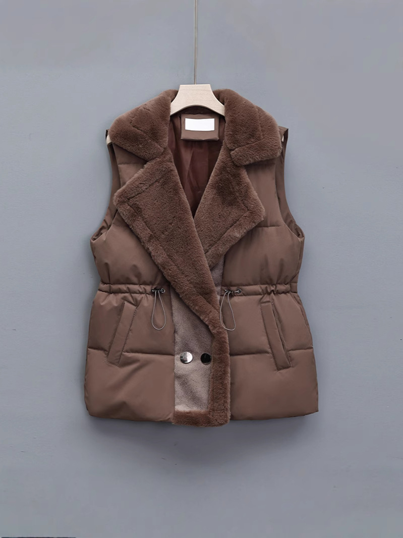 Новинка 2025, женский зимний новый двубортный меховой воротник больших размеров, меховой универсальный хлопковый жилет, женский жилет, куртка