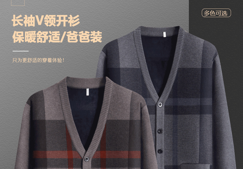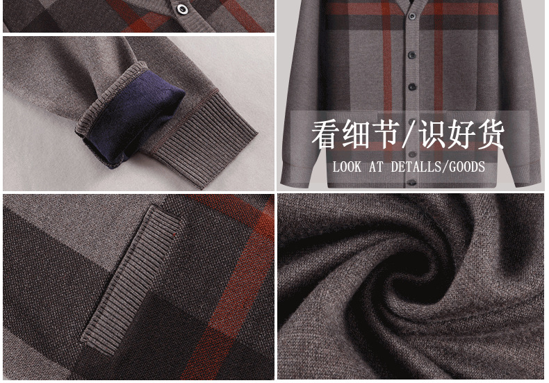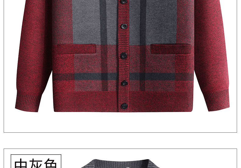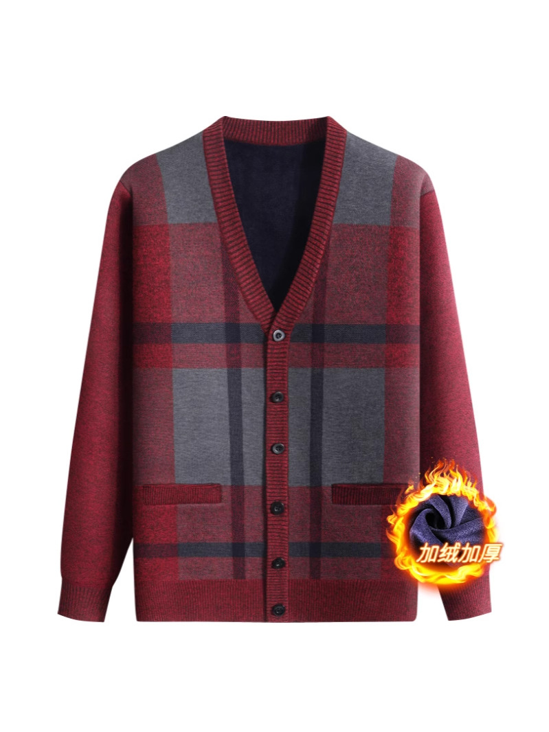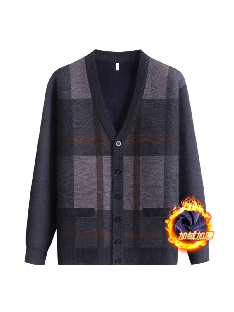 Кардиган свитер мужской мужчина среднего и пожилого возраста дедушка плюс бархат осенью и зимой