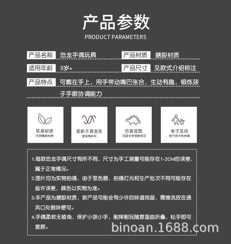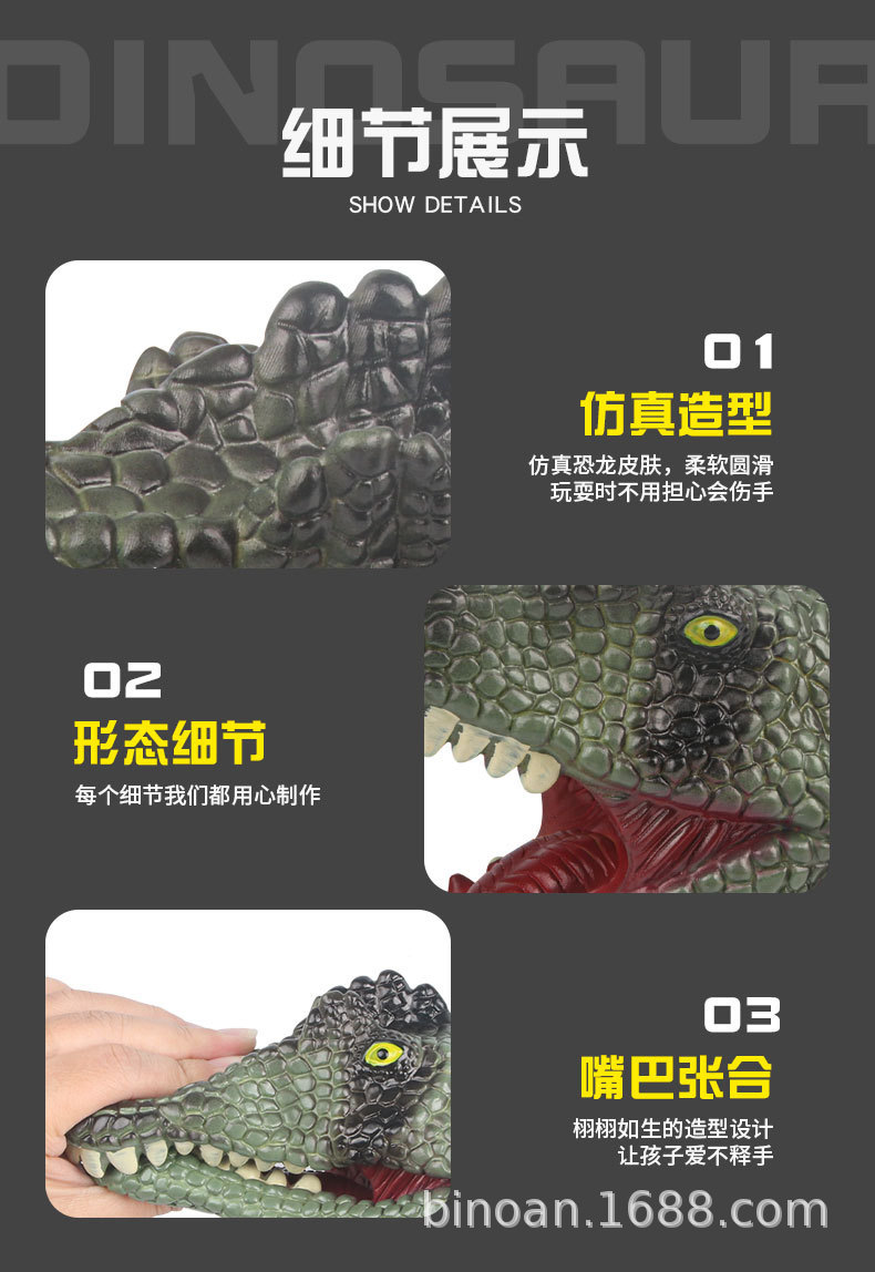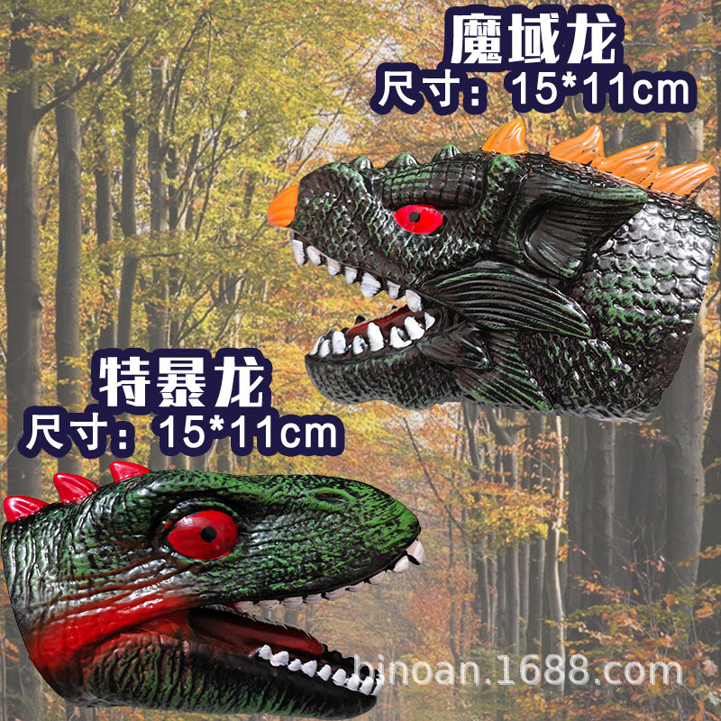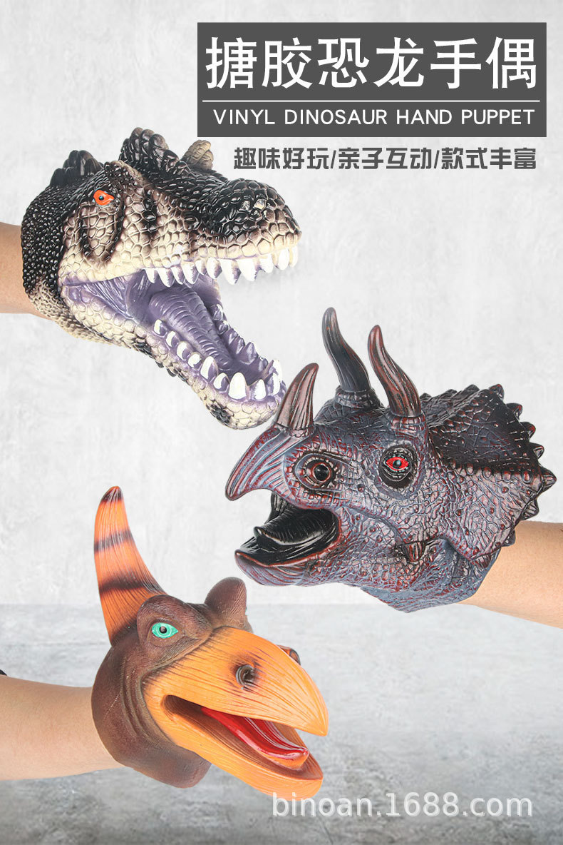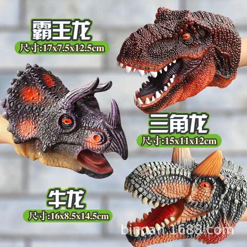 Мягкие резиновые перчатки-динозавры среднего размера: Тираннозавр, Трицератопс, Акула — интерактивная игрушка, модель-симулятор для взаимодействия