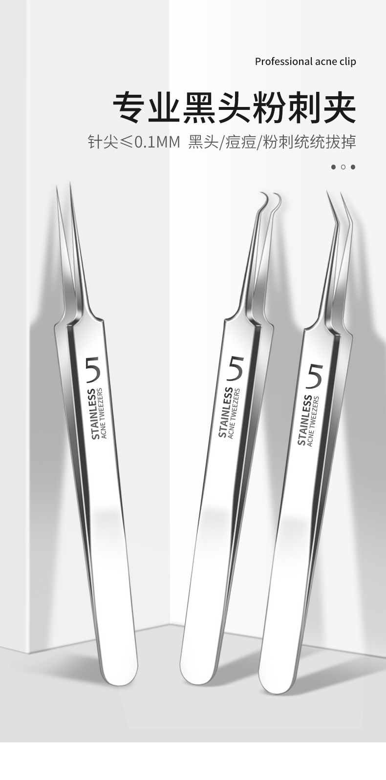 Набор инструментов для удаления акне из нержавеющей стали: клипса для прыщей, клипса для черных точек, иглы для акне, оптовая продажа косметических инструментов для удаления прыщей и несовершенств кожи, экстрактор для прыщей.