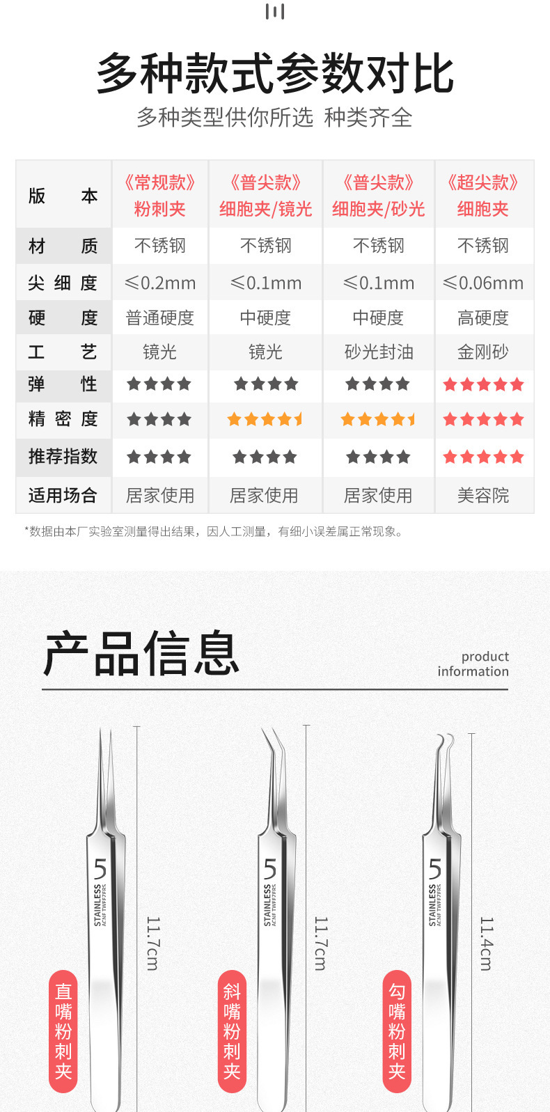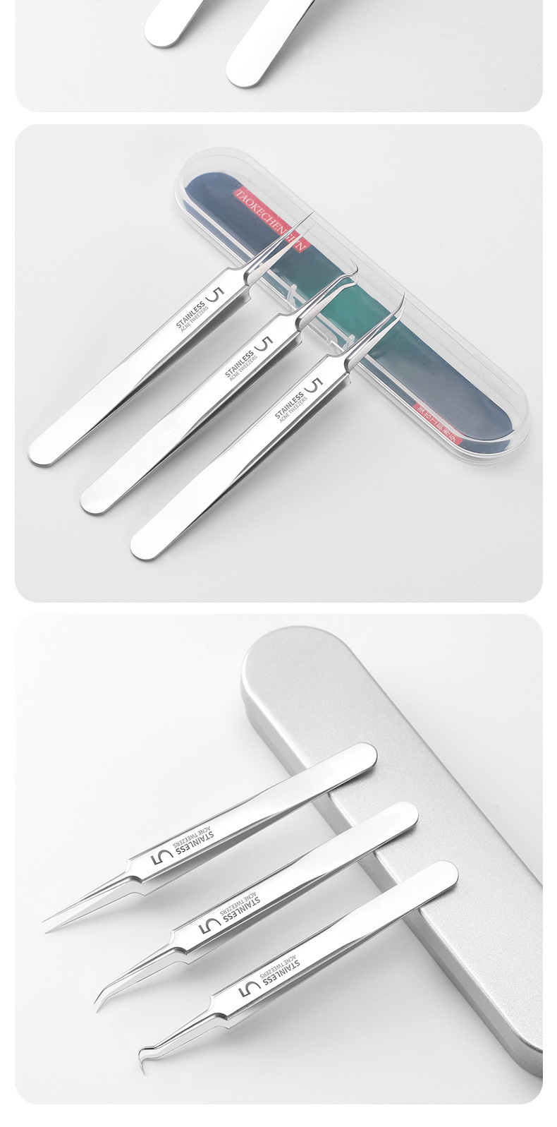 Прямой зажим для рта (голый); Наклонный зажим для рта (голый); Зажим-крючок (голый); Прямой зажим для рта (в упаковке); Наклонный зажим для рта (в упаковке); Изогнутый зажим для рта (в упаковке); Прямой рот + крючок + игла от прыщей (в коробке); Прямой + наклонный + изогнутый (в коробке); Прямой рот + наклонный рот + крючок + игла от прыщей (в коробке); 5-кратное увеличительное стекло
