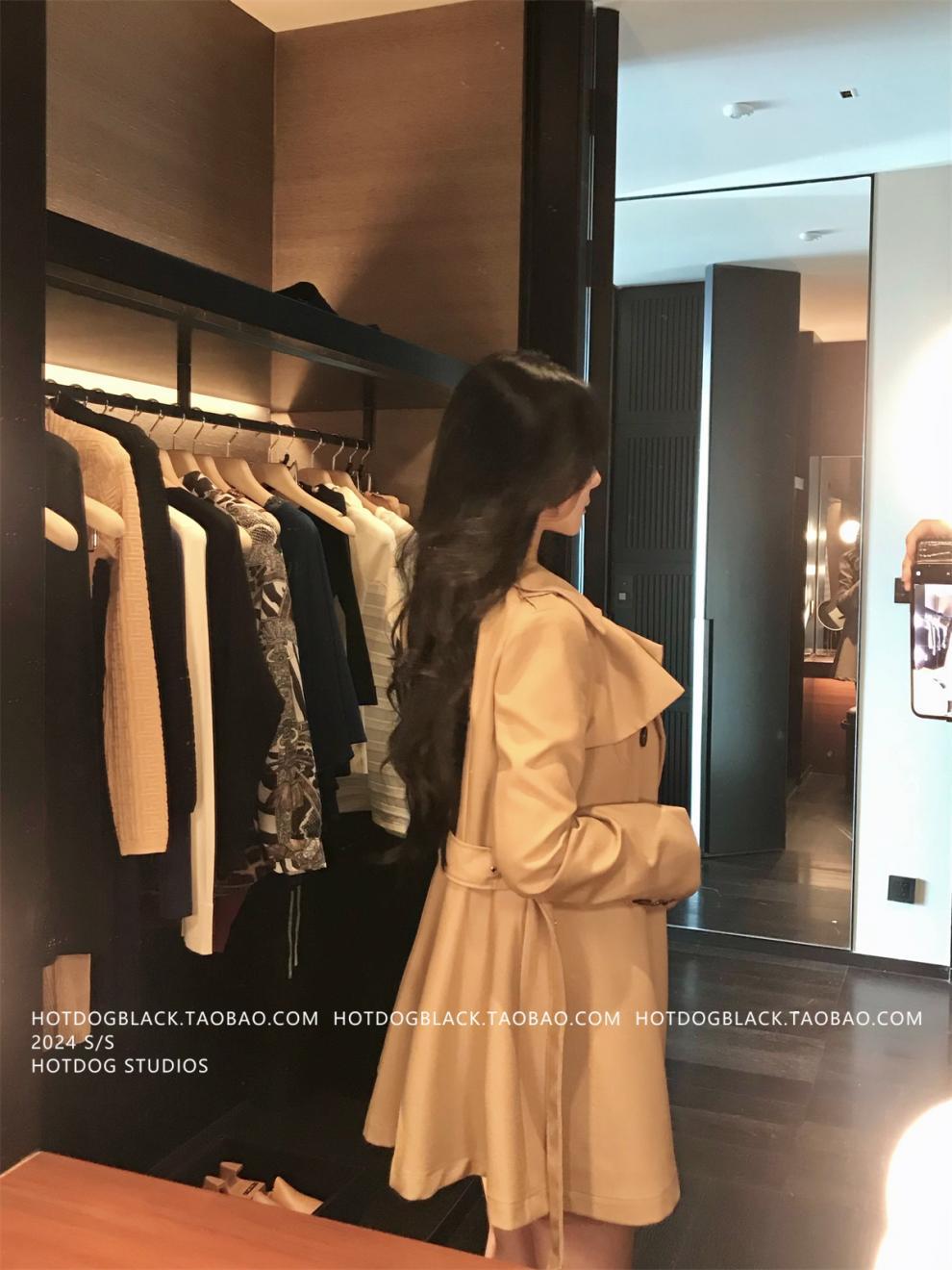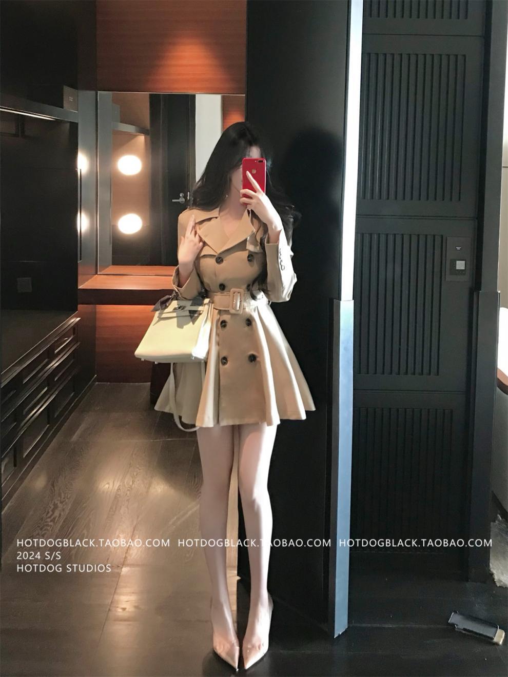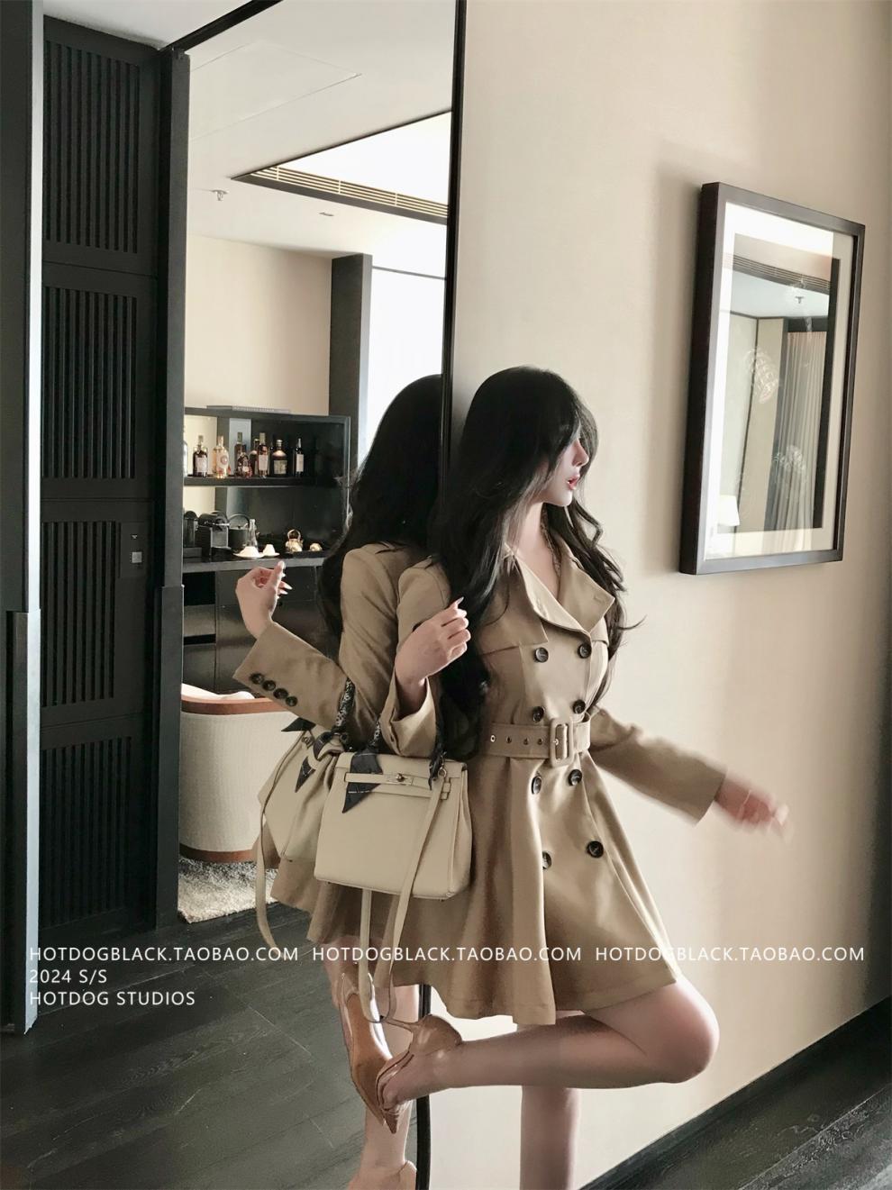 Пальто-тренч Hot Dog 2025 очень яркое, оригинальный стиль, пальто-тренч цвета хаки в стиле платья с эффектом падающих осенних листьев + пояс, для женщин.