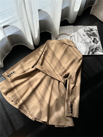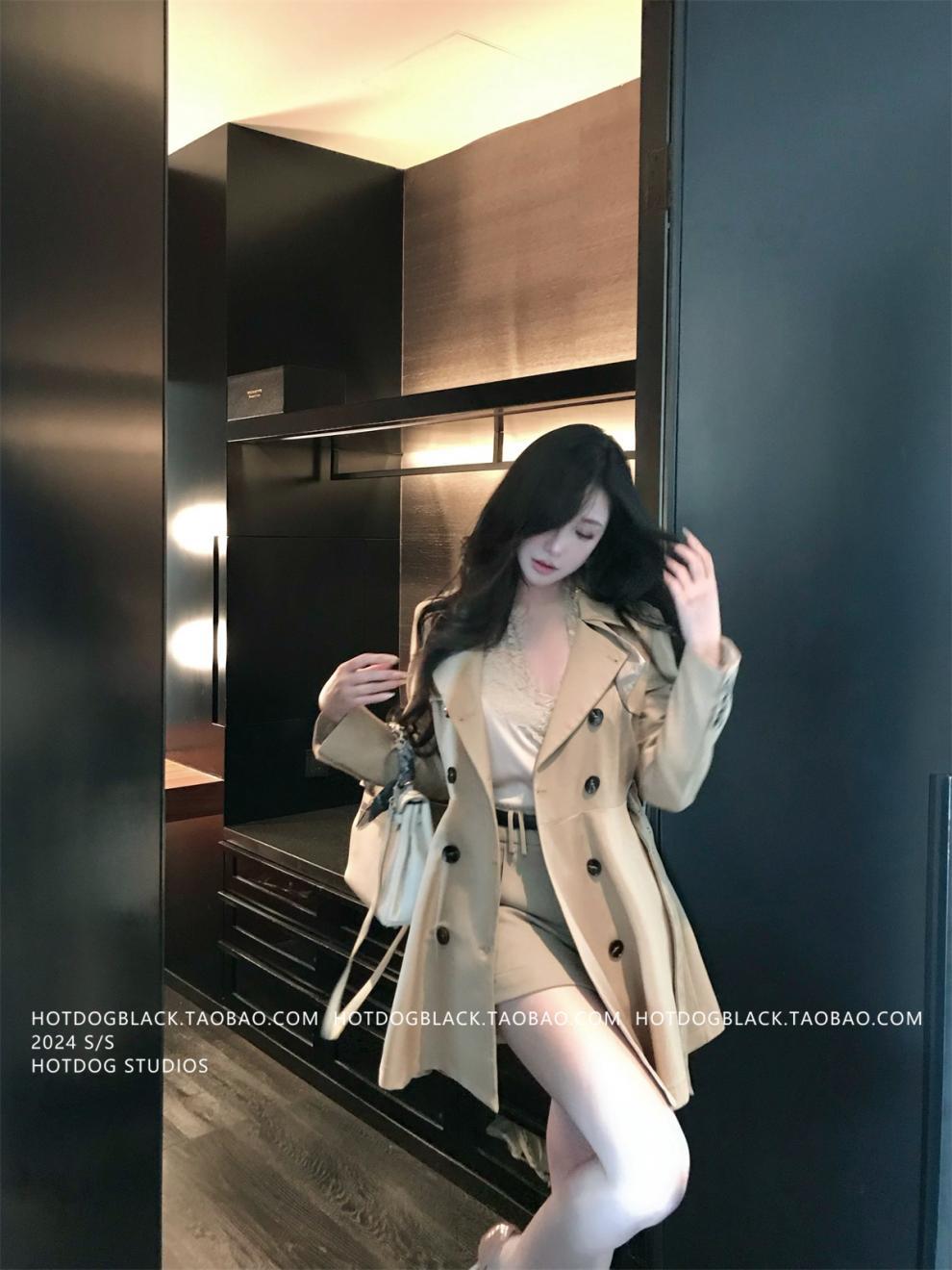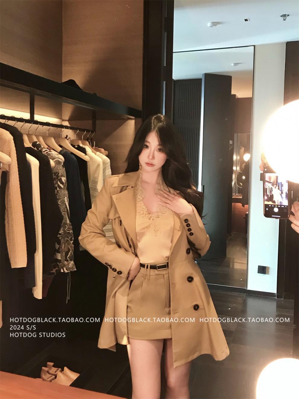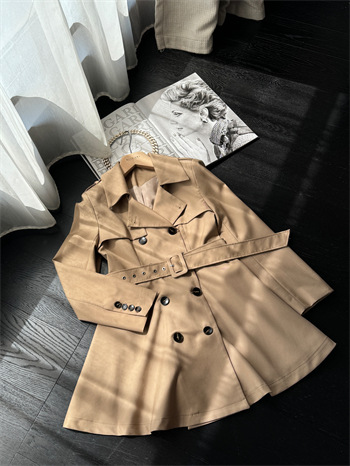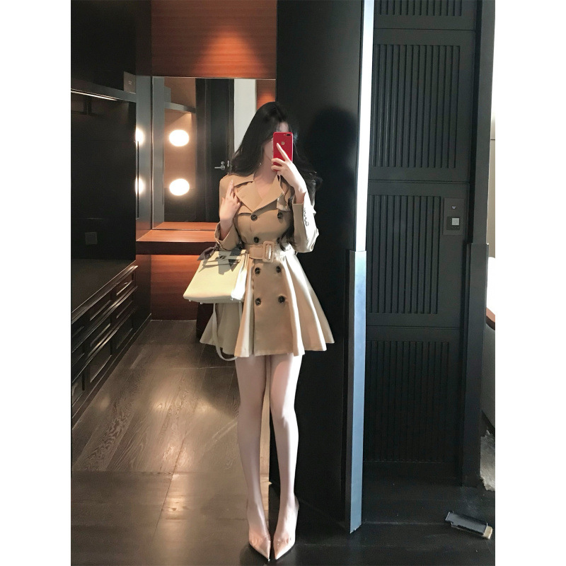 Пальто-тренч Hot Dog 2025 очень яркое, оригинальный стиль, пальто-тренч цвета хаки в стиле платья с эффектом падающих осенних листьев + пояс, для женщин.