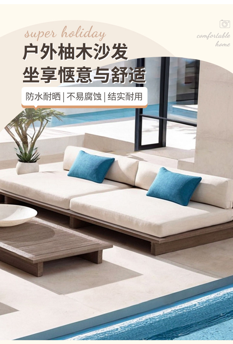 Скандинавский открытый диван мебель из тикового дерева солнцезащитный крем отель балкон терраса патио гостиная повседневный простой диван из массива дерева
