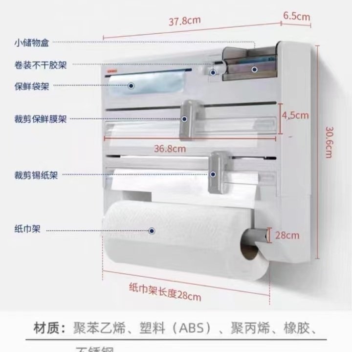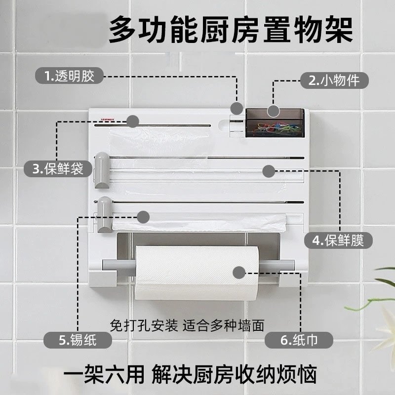Многофункциональная кухонная бытовая подставка настенная пластиальная коробка для хранения и резак держатель для рулонов