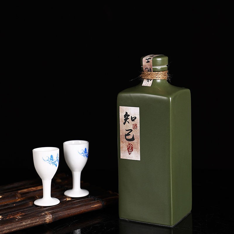 Керамическая бутылка вина Цзиндэчжэнь 0.5kg Zhiji темно-зеленое белое вино рисовое вино пустая бутылка вина можно напечатать с квадратной бутылкой с логотипом