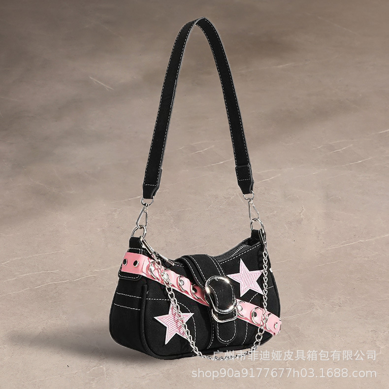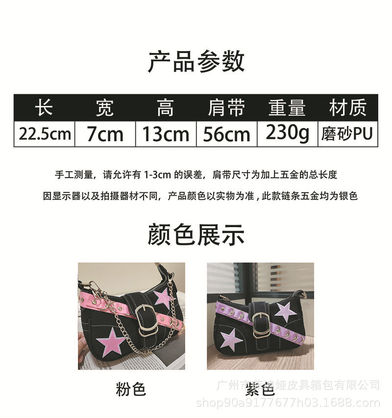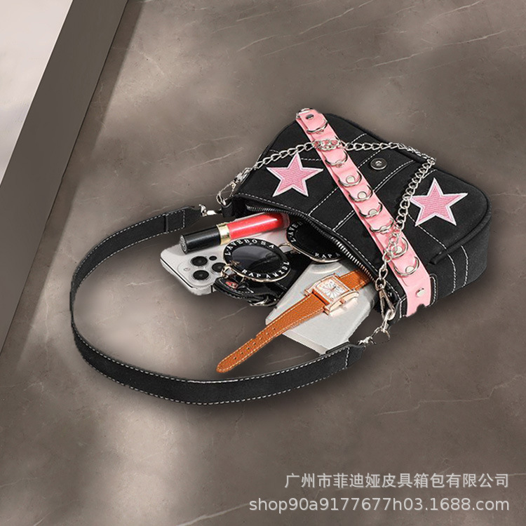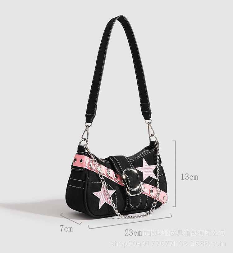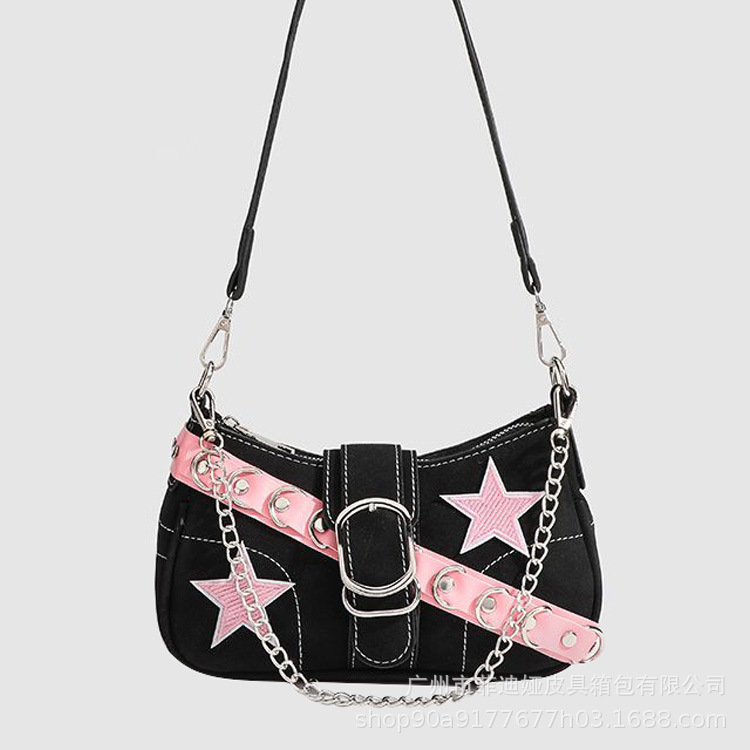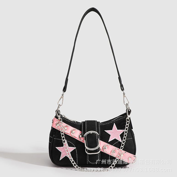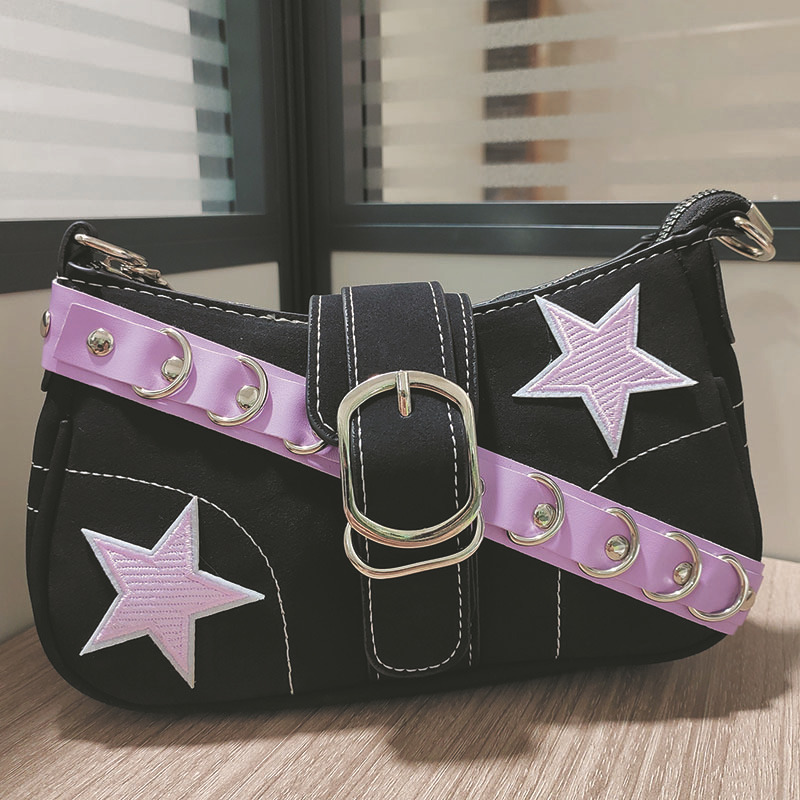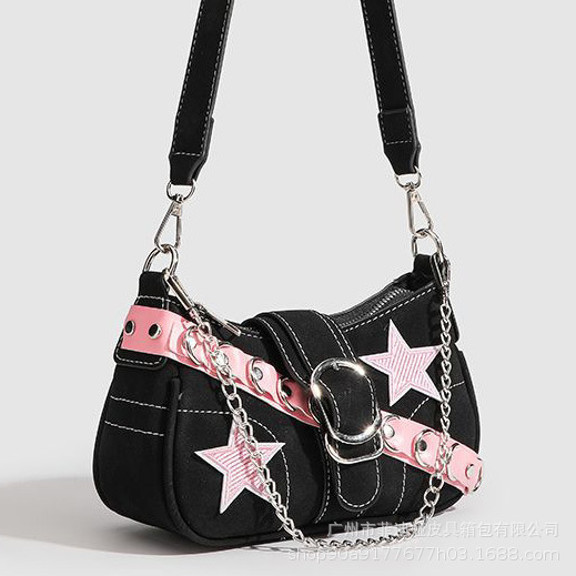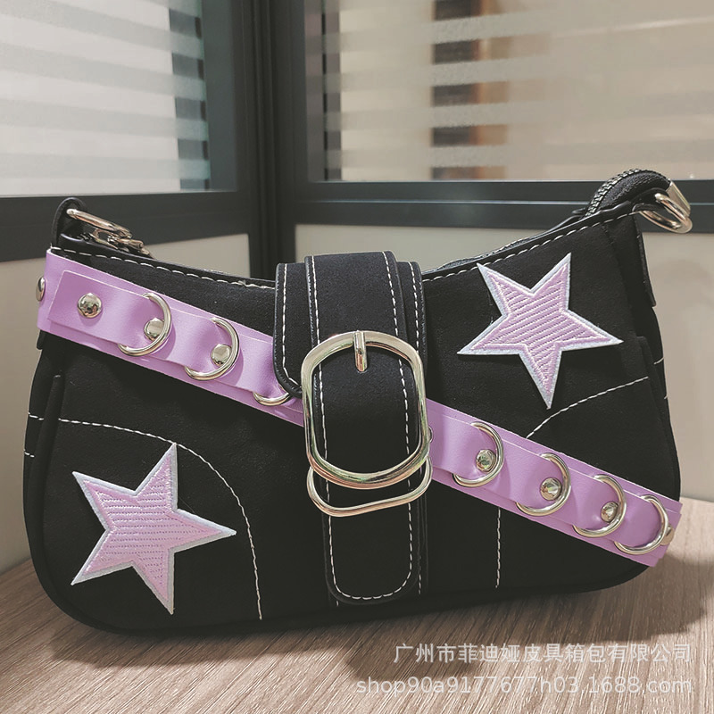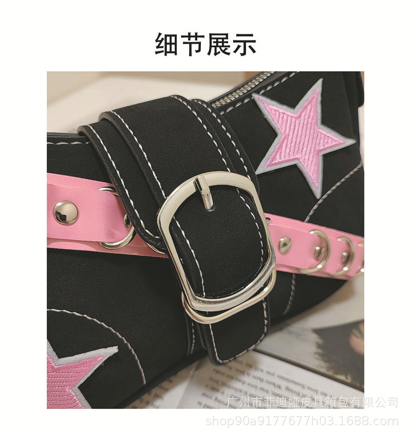 Милая и крутая сексуальная высококачественная сумка через плечо нишевого дизайна из искусственной кожи с матовым плечом, сумка-багет, цветная розовая сумка со звездами