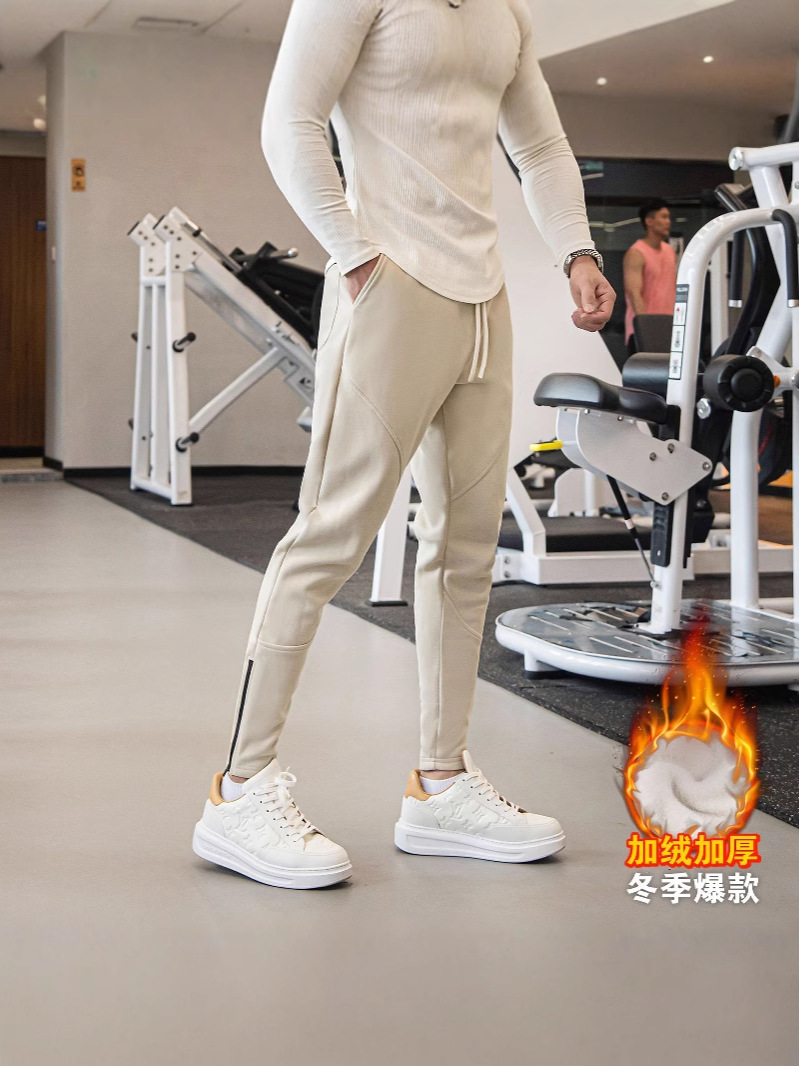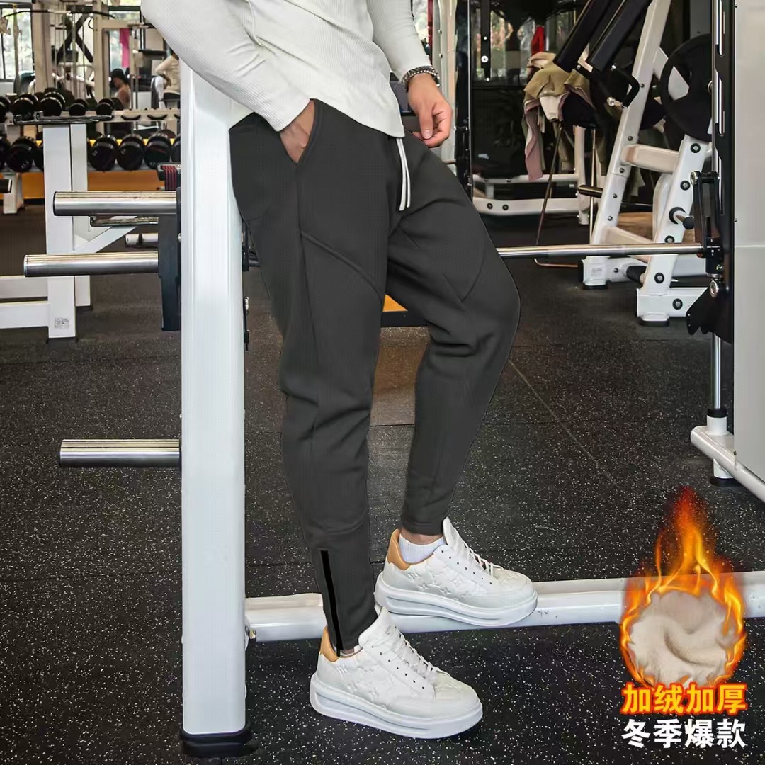 Плюшевые толстые брюки спортивные спортивные мужские беговые свободные осенние и зимние американские фитнес-брюки прямые брюки на молнии