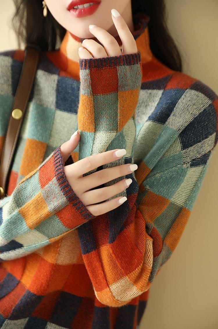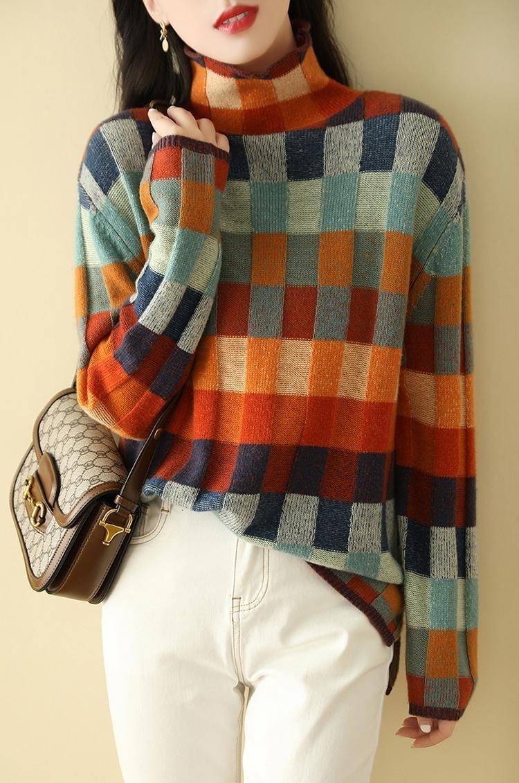 Весенний и осенний новый стиль 2025 мода минус возраст дикие трикотажные свитера темперамент тонкий, высококлассный клетчатый свитер