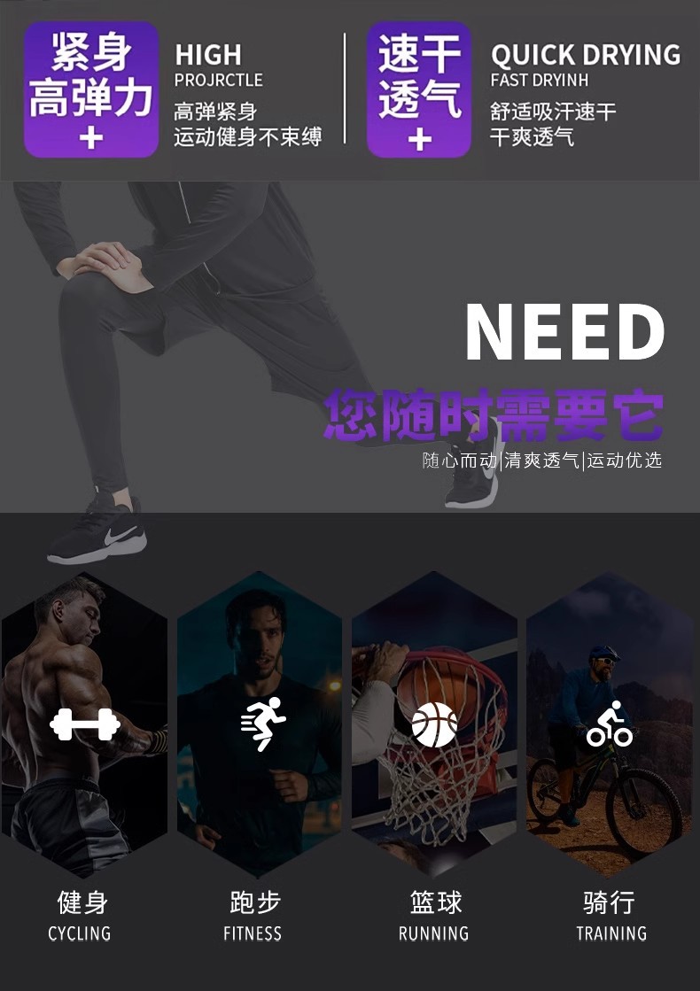 Быстросохнущие колготки Спортивные фитнес-костюмы Мужские костюмы Беговые брюки для катания Тренировочная одежда Нижнее белье с высокими рукавами