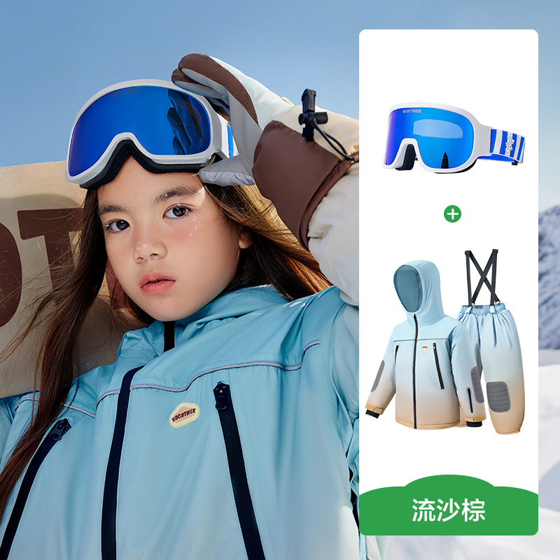KK дерево детский лыжный костюм женский мальчик разделил 2024 новый водонепроницаемый теплый открытый лыжный костюм
